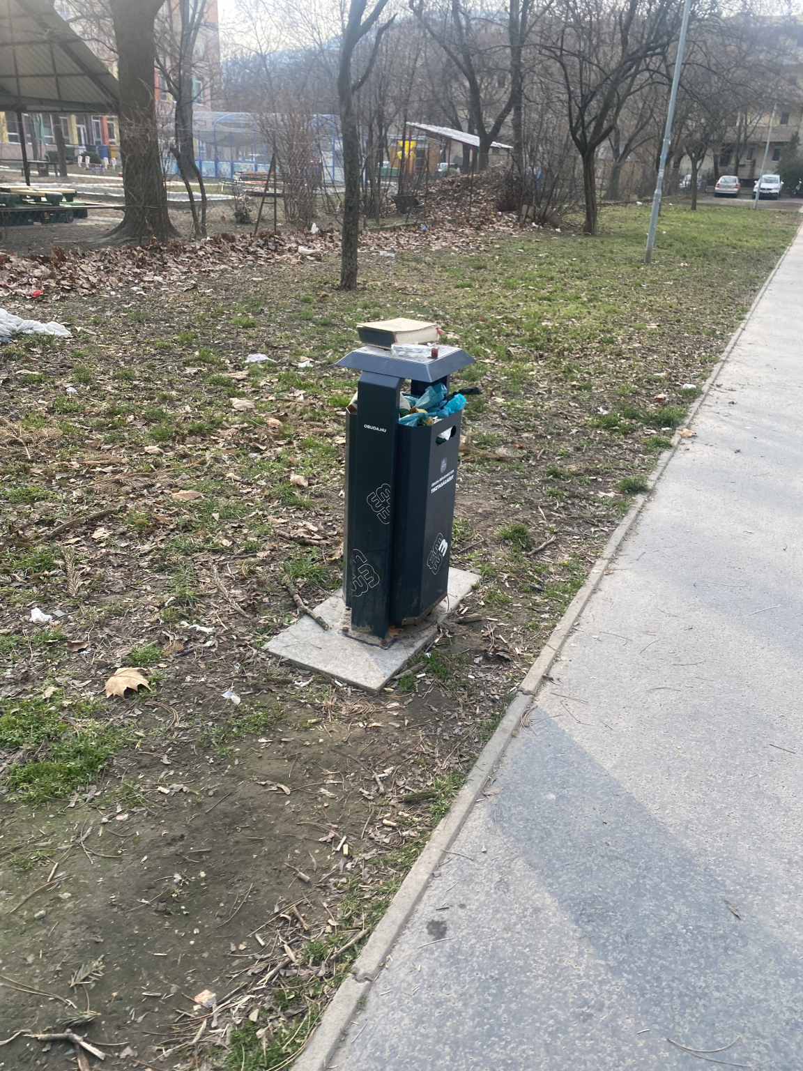 A Szőlő utcai és Teszársz Károly utcai házak közt a Máltai játszótér melletti zöld területen nagy mennyiségű szemét van lerakva és a kis kukából is borul ki a sok szemèt. Kérem intézkedjenek.