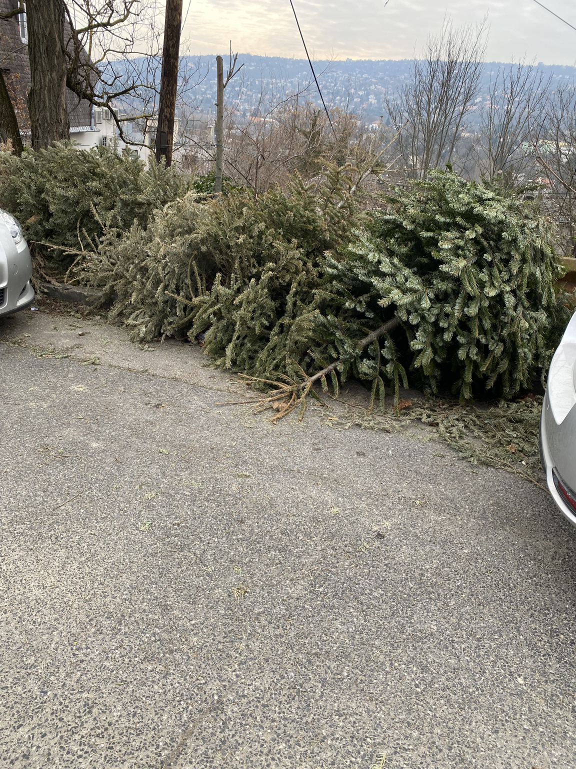A Csévi, Csalán és Szilfa utcában még mindig nem került sor a fenyőfák elszállítására. A tetemes zödhulladék akadályozza a gyalogosforgalmat és a parkolást. Egy ilyen evidens közfeladat ellátásához, miért kell lakossági bejelentést tenni?