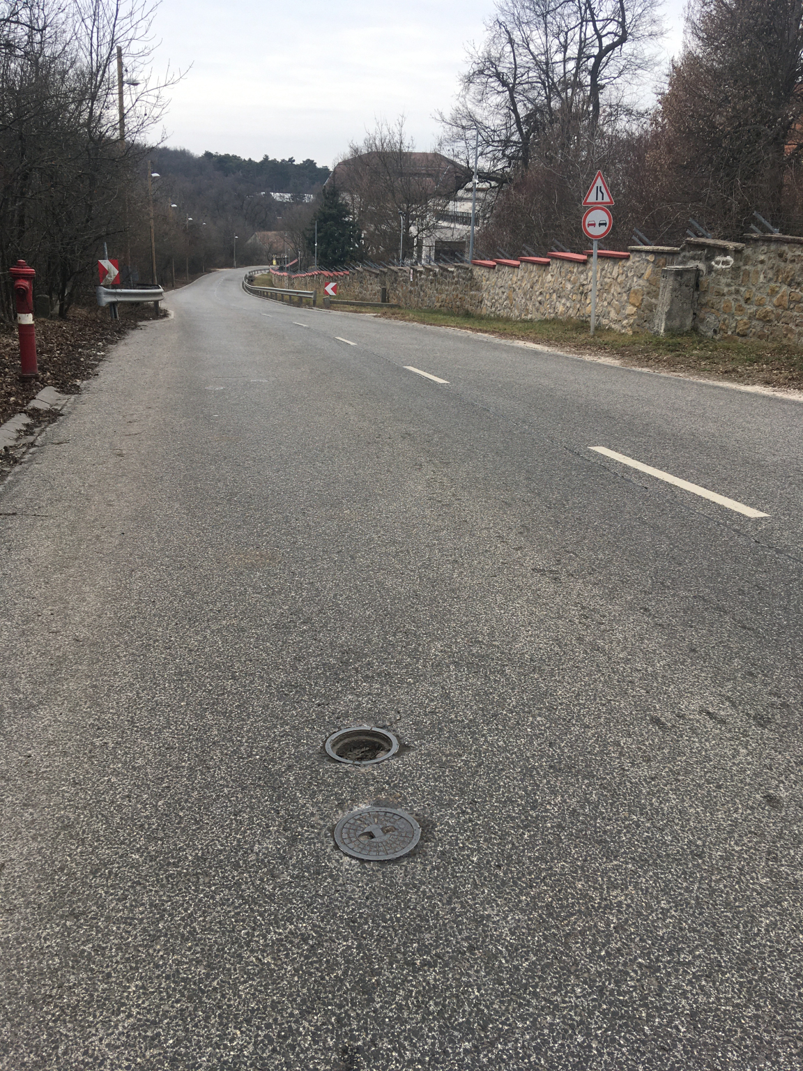 A Konkoly-Thege Miklós úton (Bp. 12 kerület), a KFKI teleppel szemben az úttesten a vízakna teteje hiányzik/betört. Különösen a kerékpárosok számára balesetveszélyes.