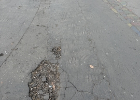 Kérem az illetékest az akadálymentesítésre, illetve a botlásveszélyes helyzet megszüntetésére. Nagyjából 1 négyzetméternyi felület aszfaltozására lenne szükség.