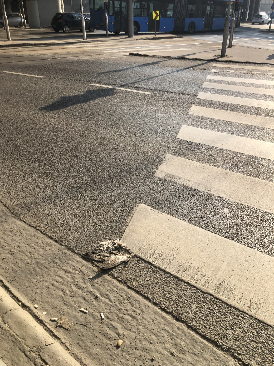 A Közvágóhídnál a zebra mellett van egy madártetem.