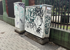 Szétrohadt talapzatú közműszekrény
