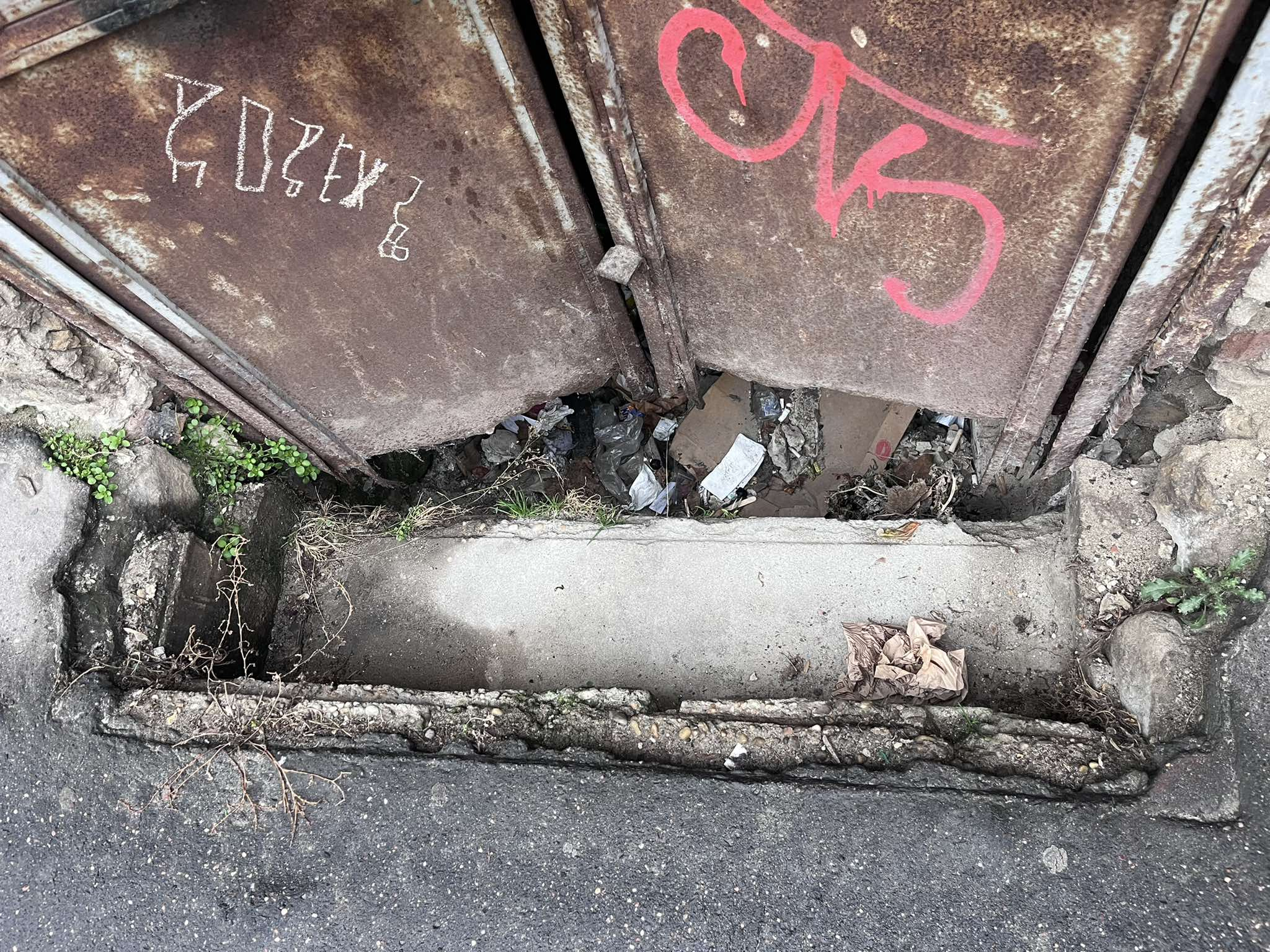 Balesetveszélyes pincelejáró a Légszesz utca 6 elött.