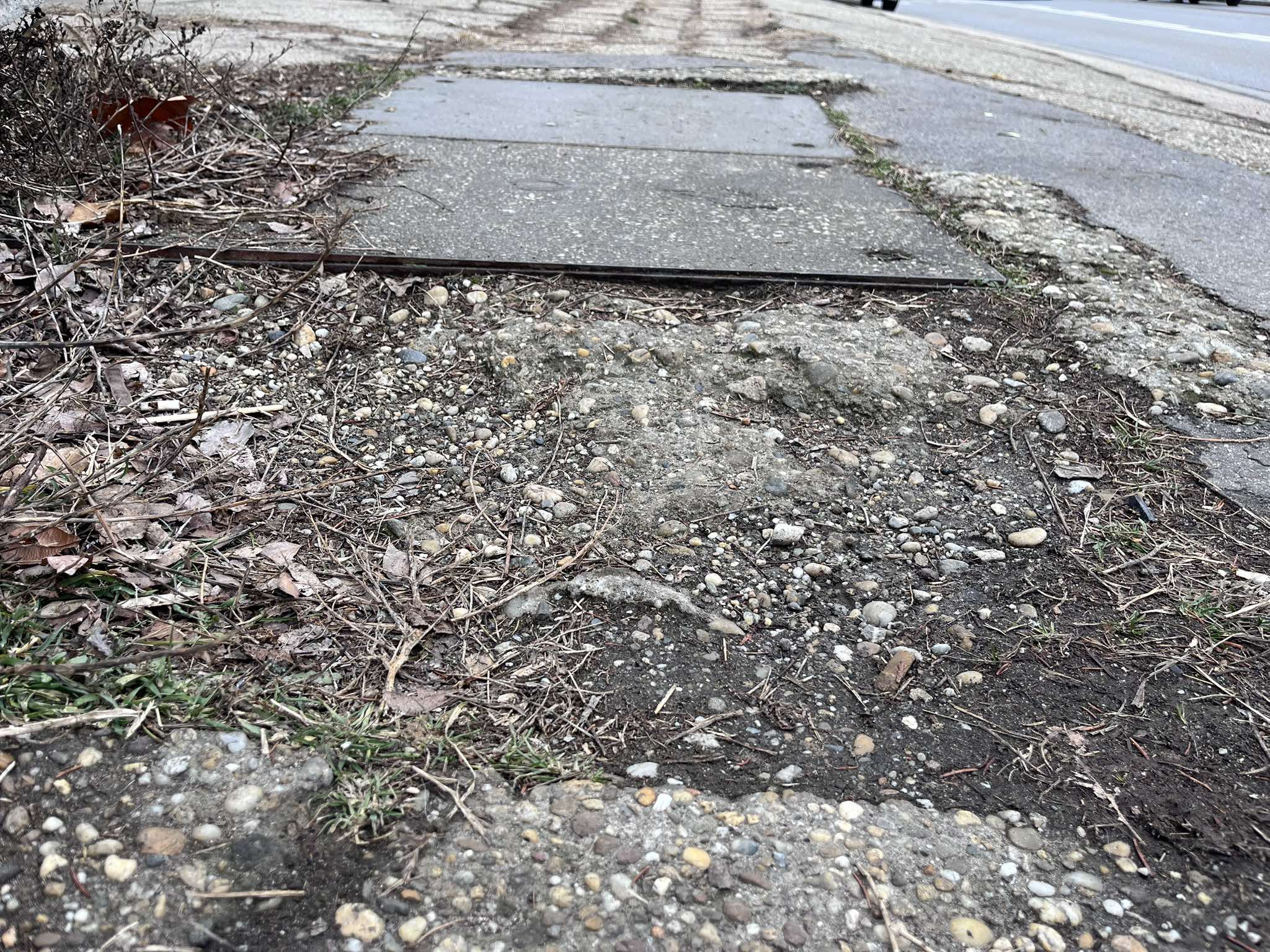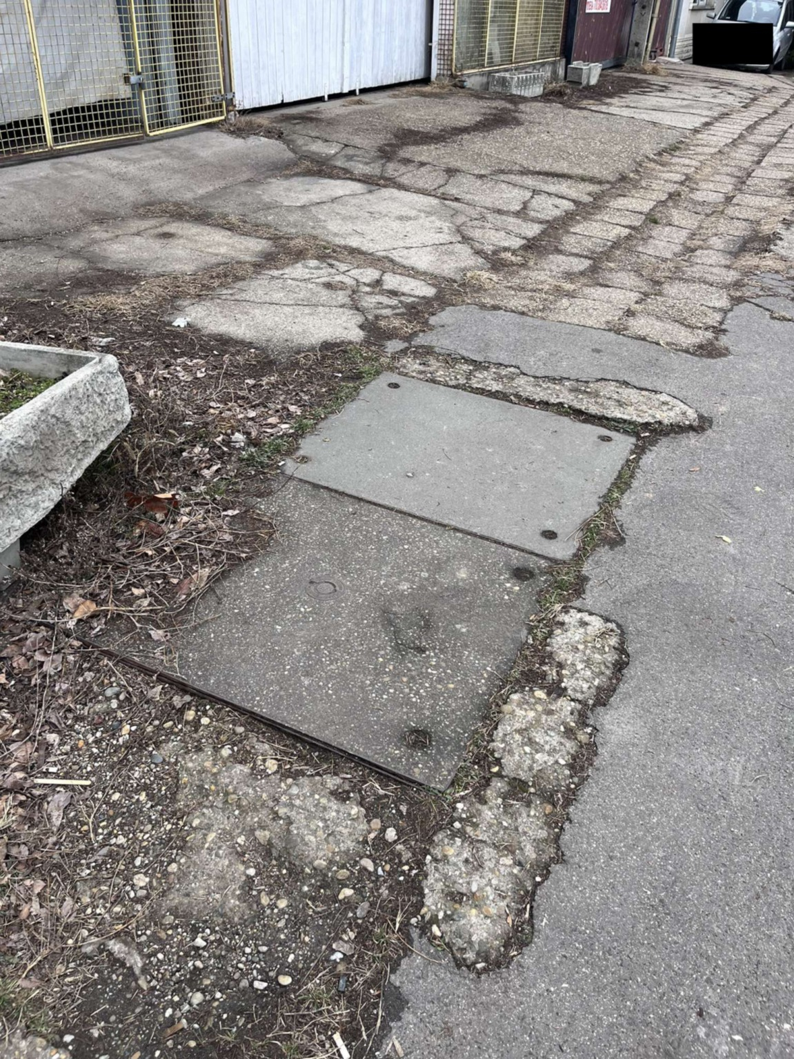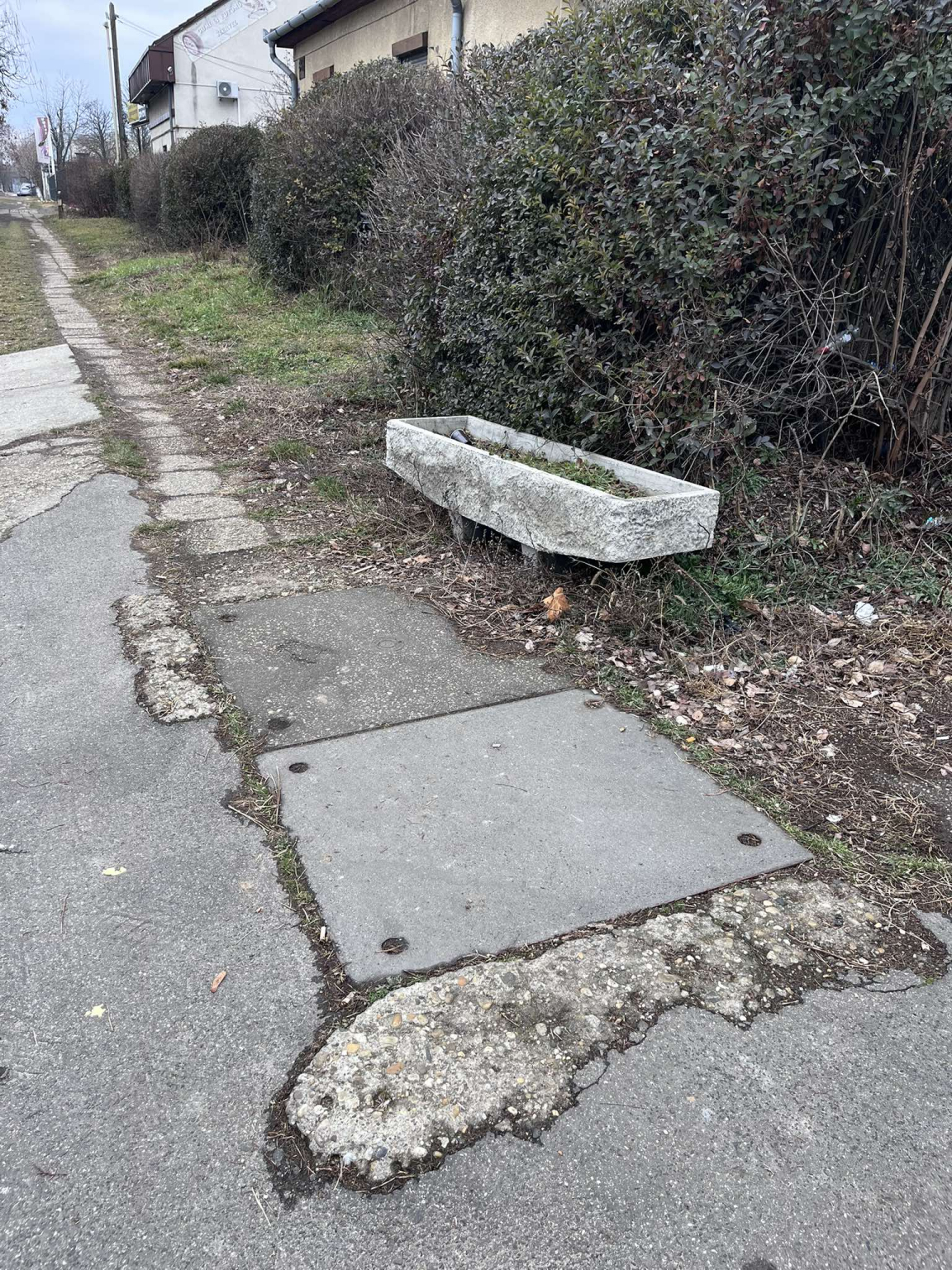 Leromlott környezetű közmű az egyik végén hiányzik a beton a másikon púpos , a fedlapok is összevissza állnak. Javításukat kérnénk.