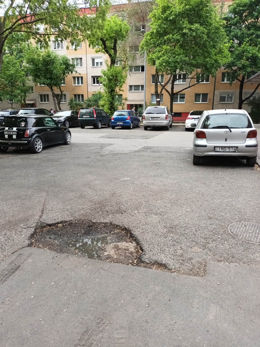 A III. Kerület Raktár u szolgáltató ház mögötti parkoló részen asztfalt hibák, tankcsapdák vannak évek óta.