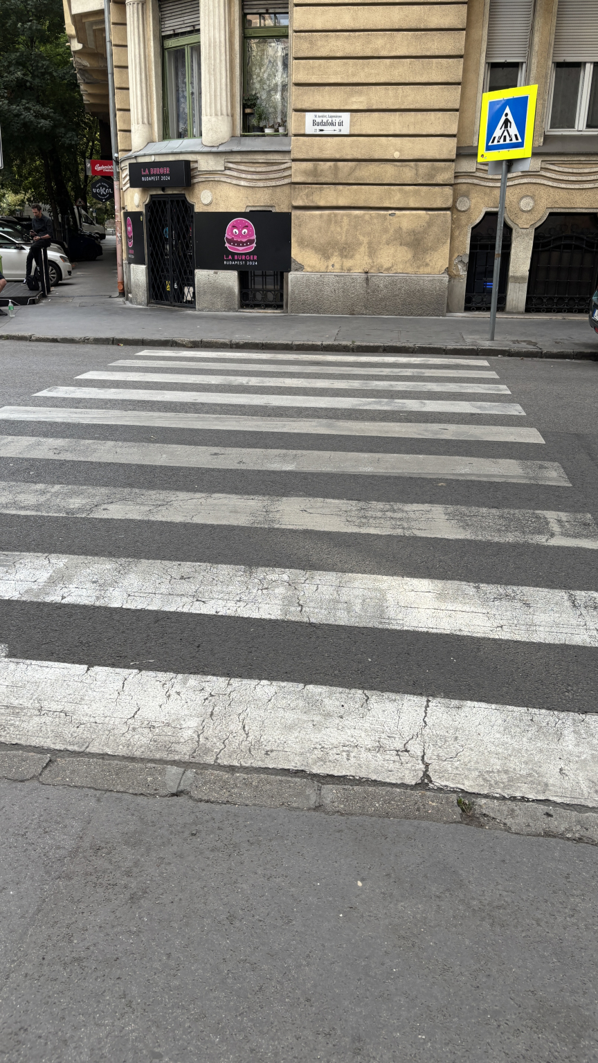 A Budafoki út Lágymányosi utca kereszteződésben,közvetlenül a 133 sz. busz megállójánál lévő zebra, egyik járdarésznél sem akadálymentes. Rollátorral, kerekesszékkel nehéz az átkelés.