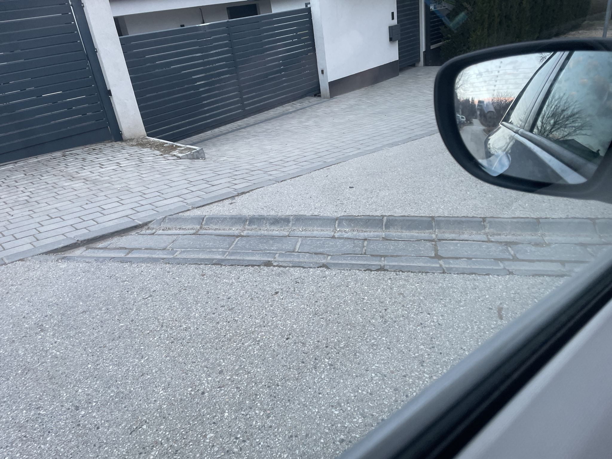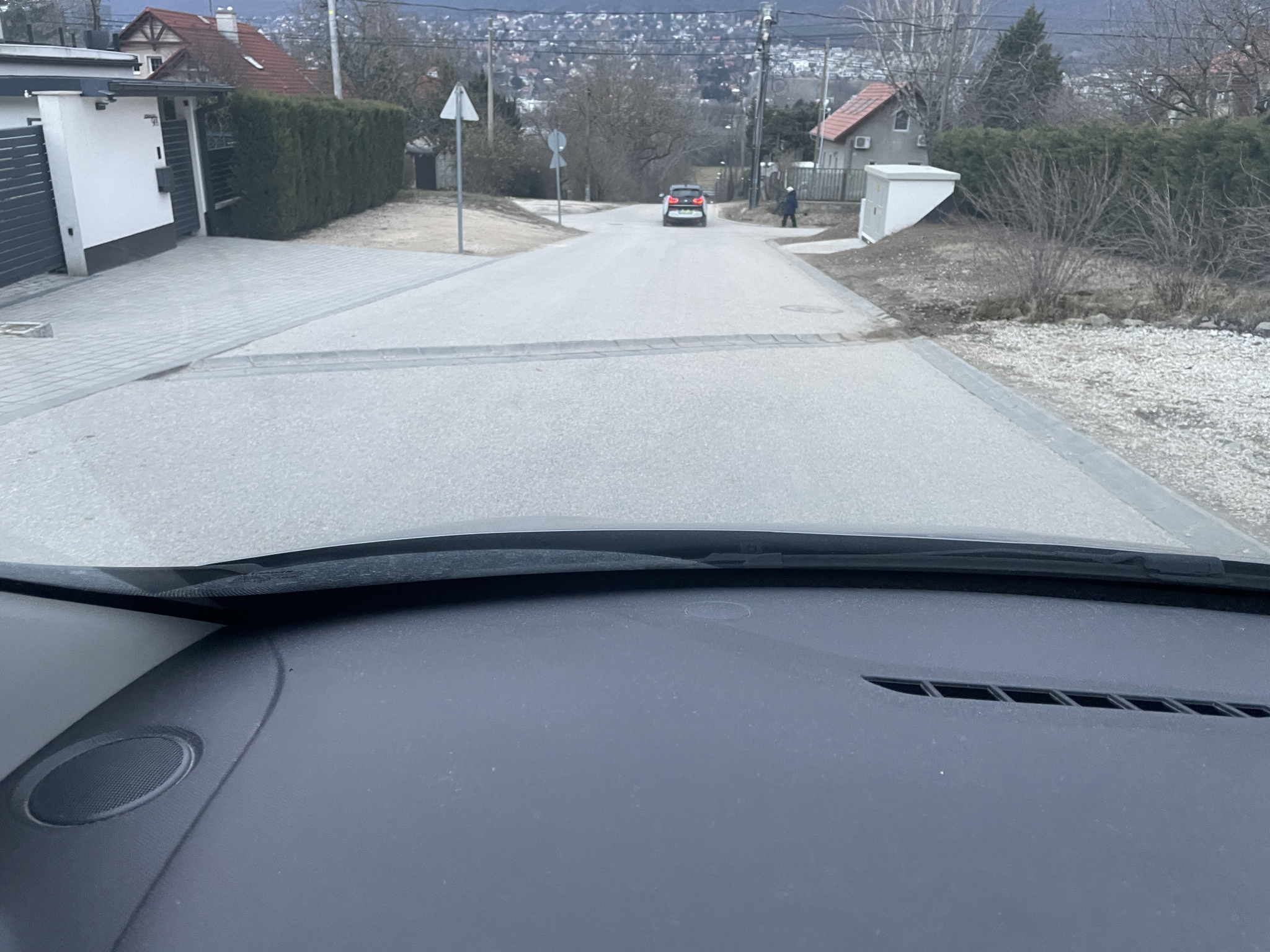Az utcában nincs közvilágítás És “K” szegéllyel van megoldva, keresztbe az úton. Az autó futóművének a legrosszabb.