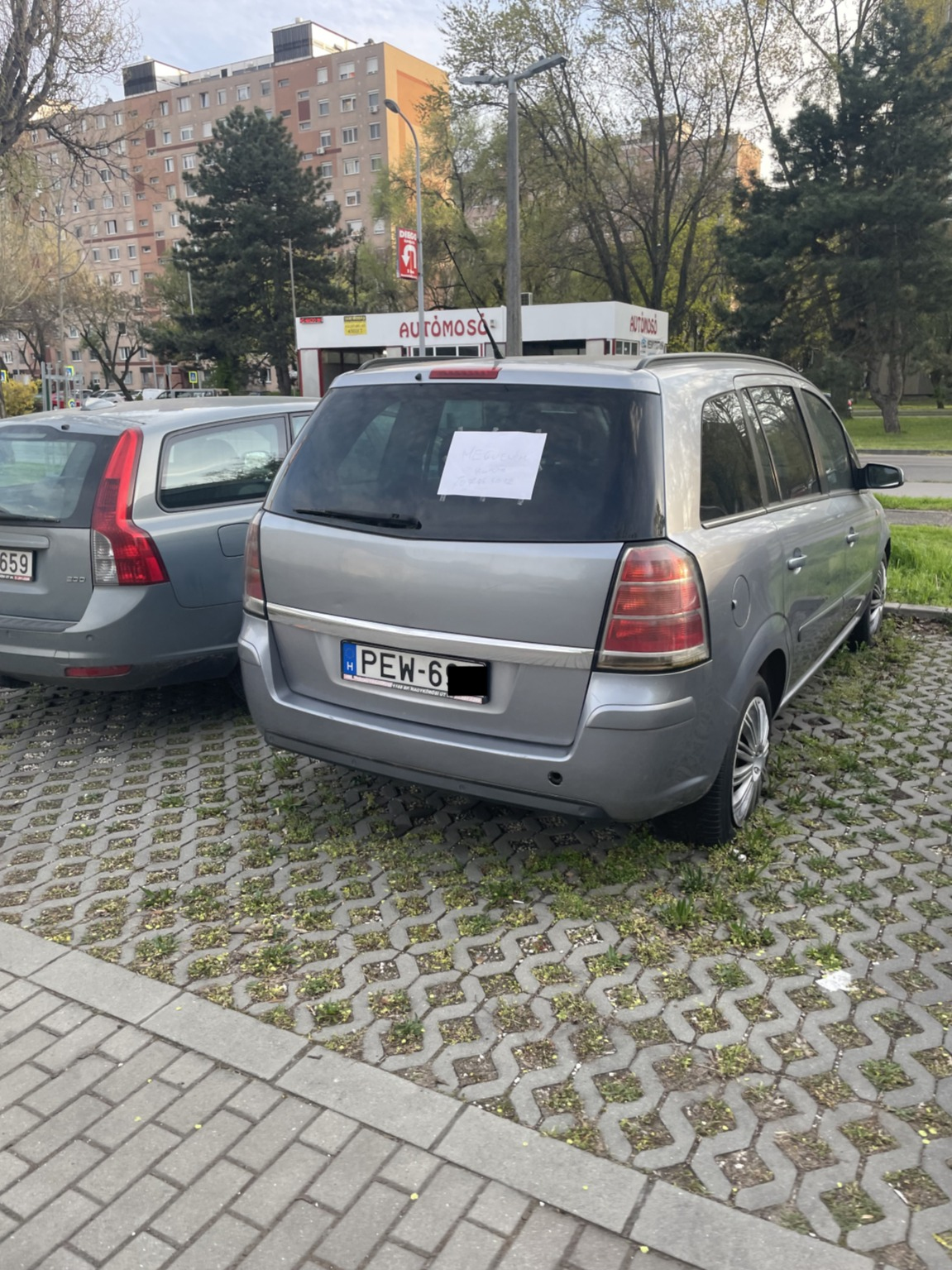 Elhagyott szürke Opel Zafira melynek a kerekei is le vannak engedve.