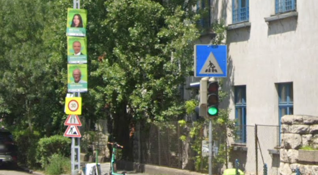 Illetve bár több helyen pirossal kiemelt az átkelő (Már amennyire még látszik), de nagy sárga gyalogátkelő nincs előtte, illetve a közvetlen ott lévő gyalogátkelő táblák is erősen koszosak.