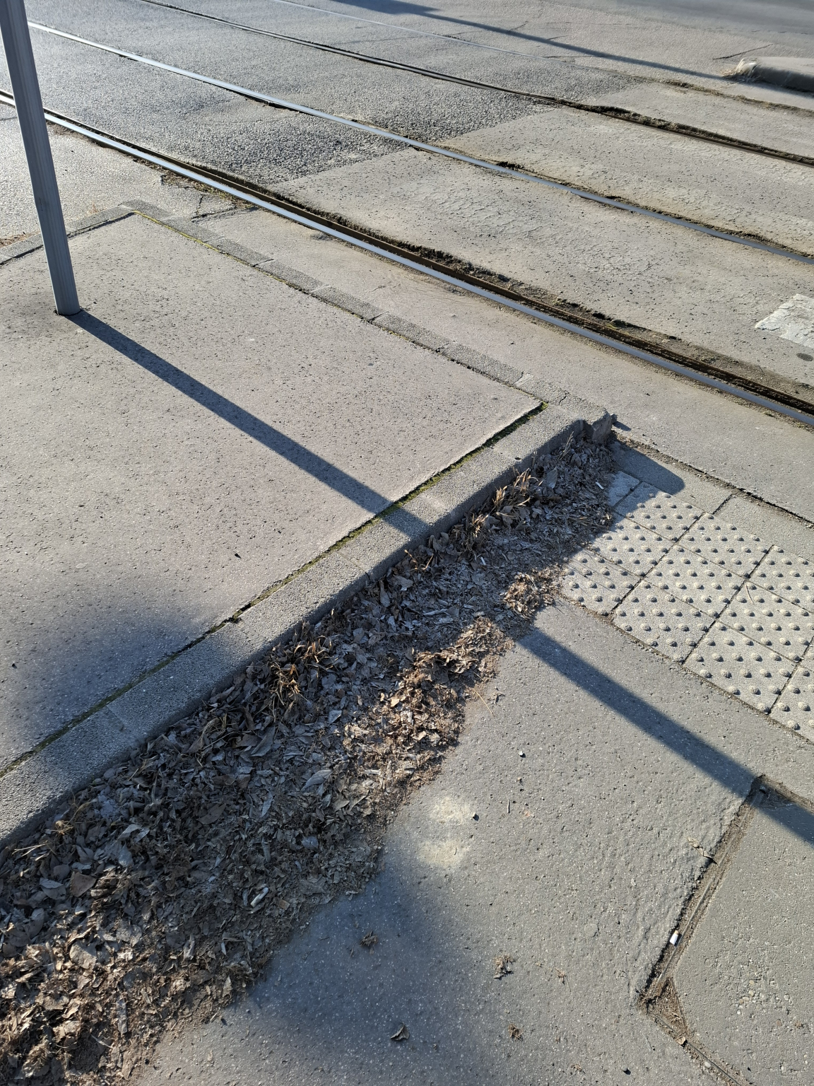 A Tihamér utcánál a gyalogátkelő melletti szegélyek környékén felhalmozott a szemét, por. Kérem takarítsák össze!
