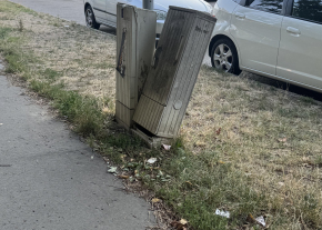 Megdőlt közműszekrény