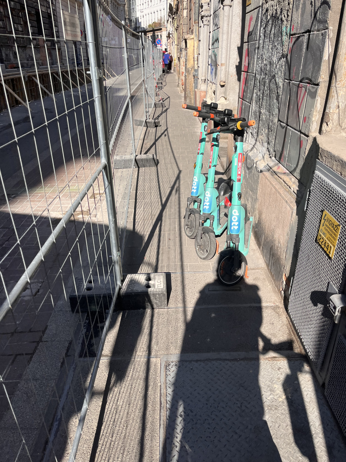 Gondolom utca ki van ürítve, gondolom az se megoldott, hogy ezt a kordonkerítéspiramist az úttestre lehelyezék, ne a járda 1/3-át le foglalva