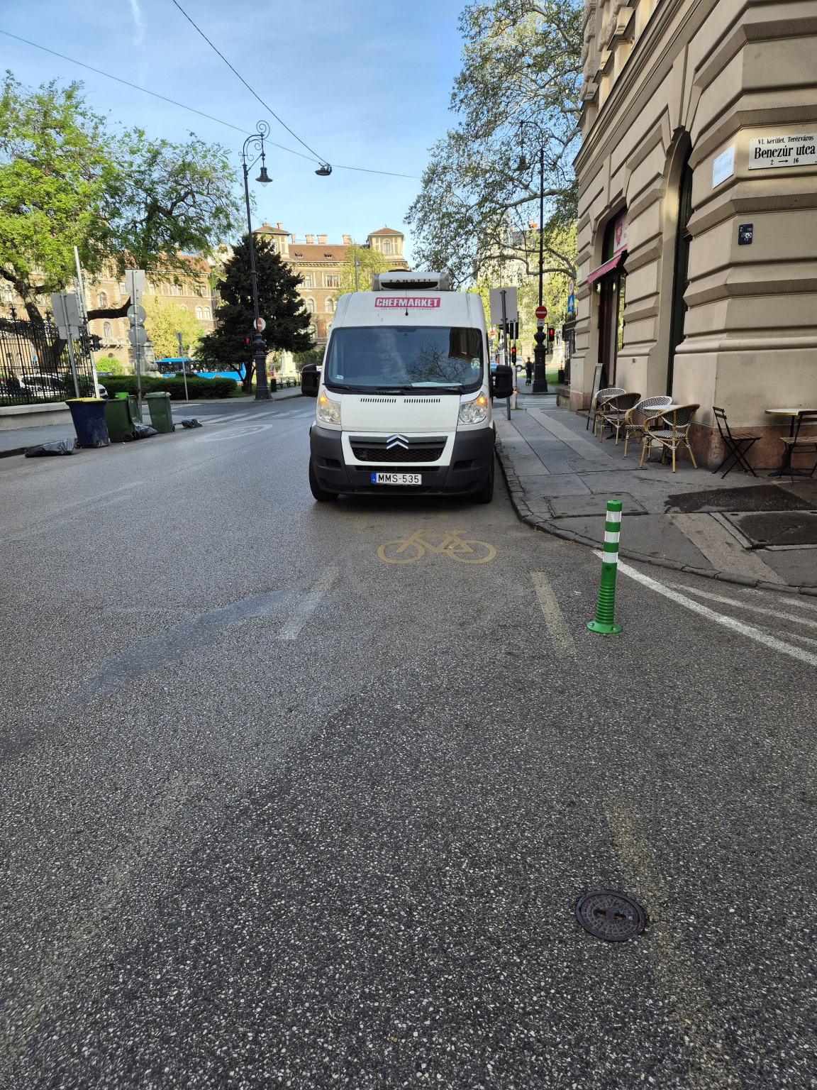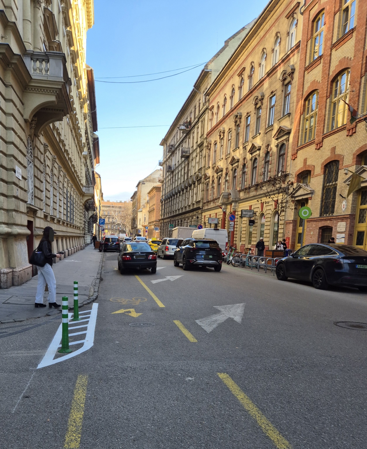 Nem a járdára kérnénk pollereket, hanem a kerékpársáv és a forgalmi sáv találkozására, ahogy ezt máshol is alkalmazták.
