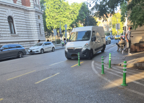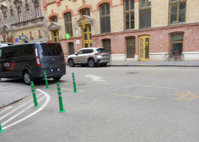 Esetleg ide nem lehetne ilyen műanyag pollereket telepíteni a kerékpársáv szélére?