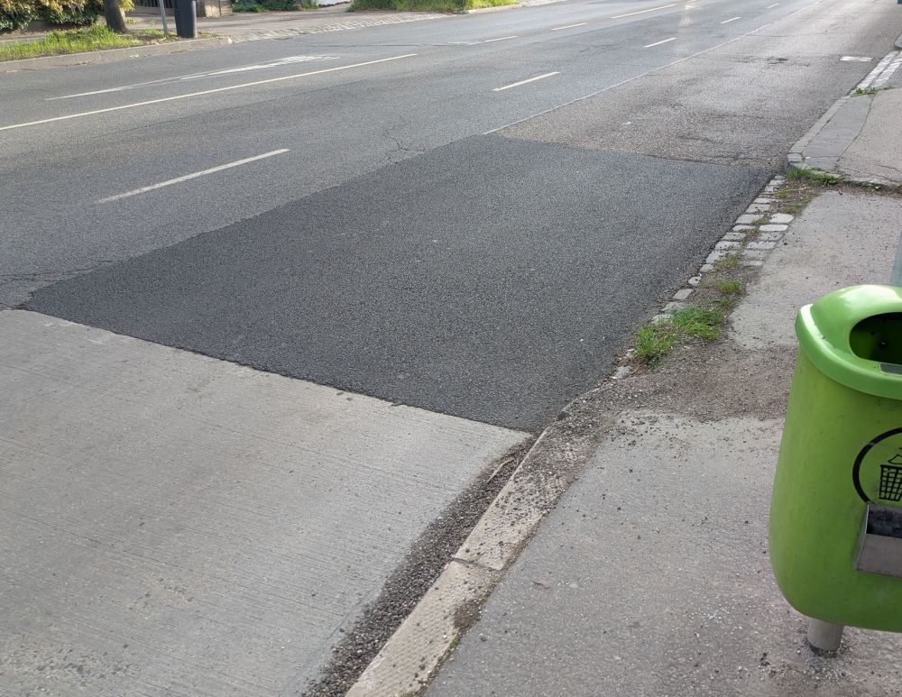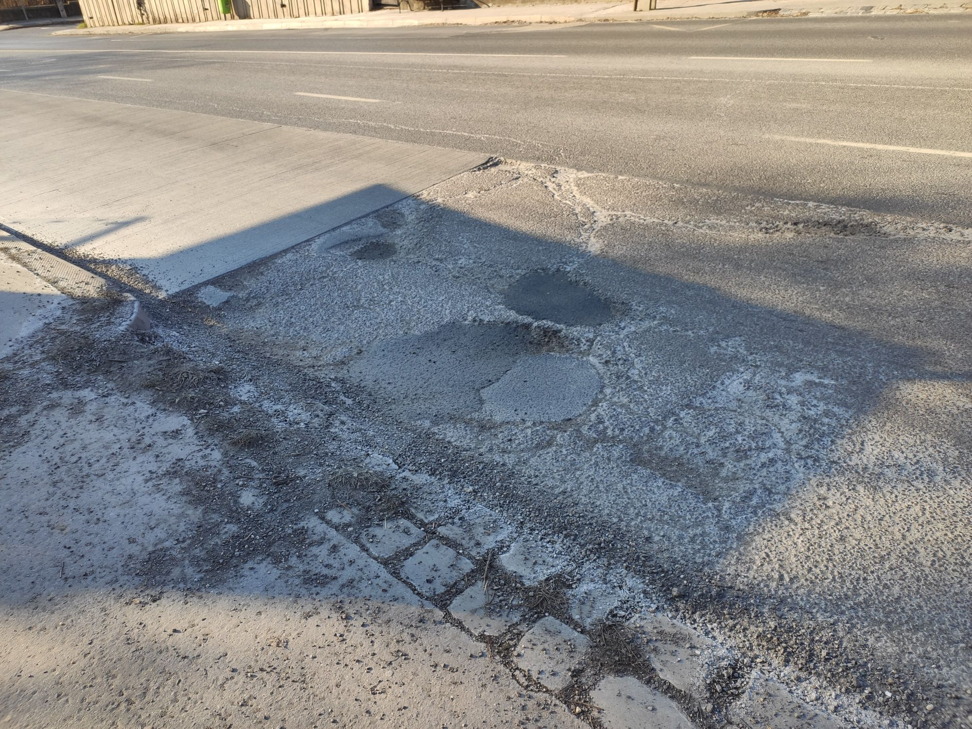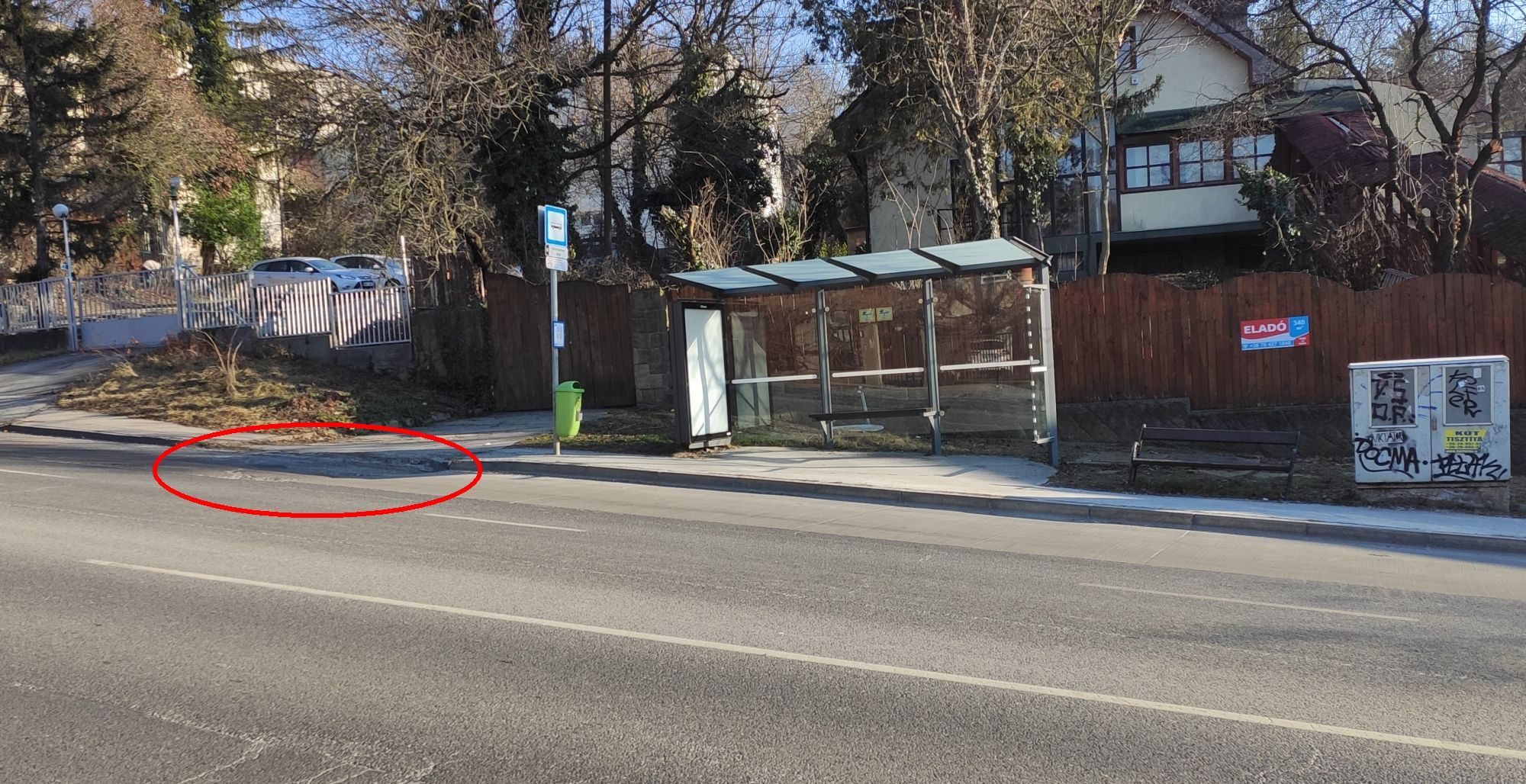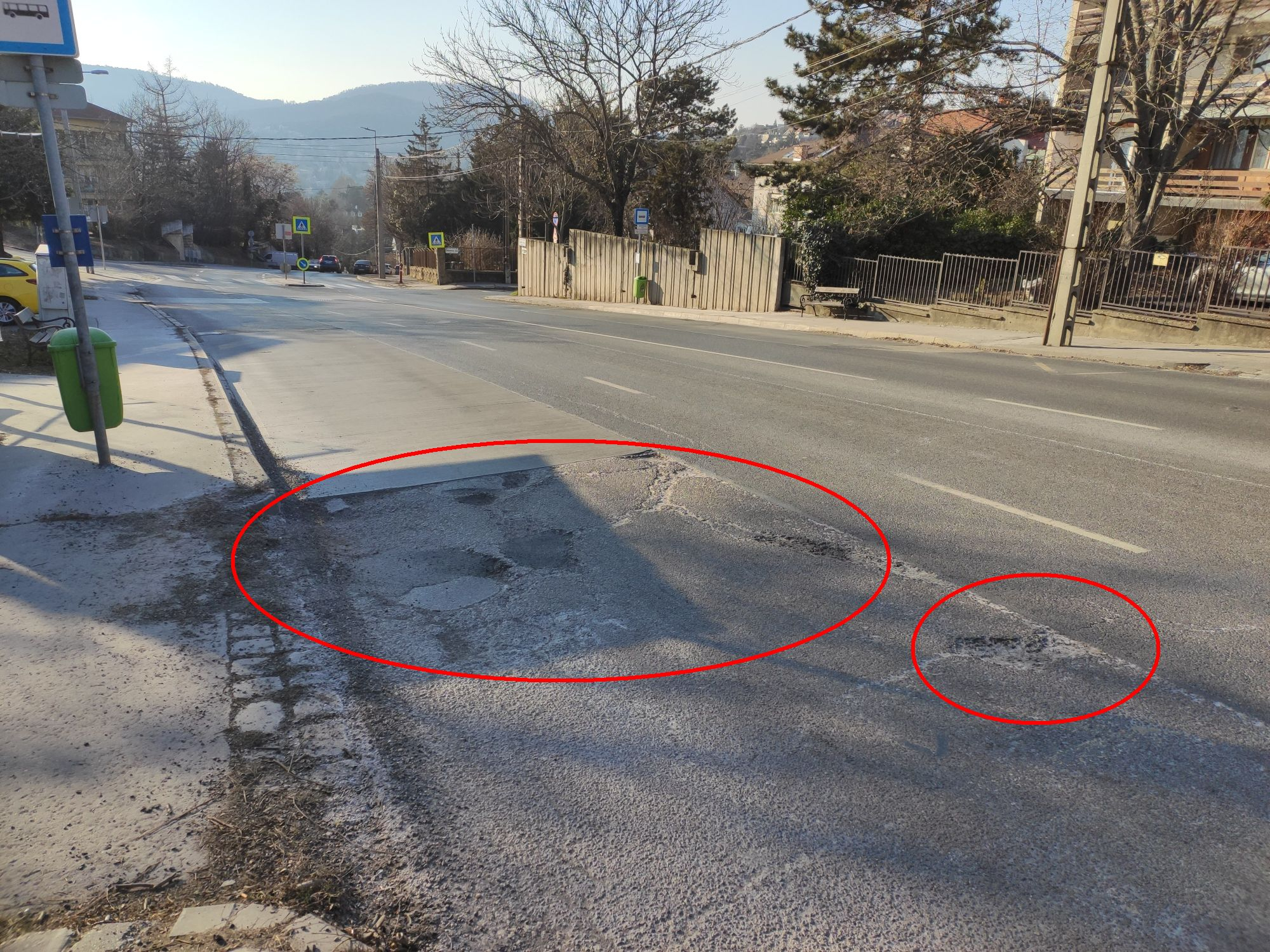 Kátyú a buszmegálló mellett