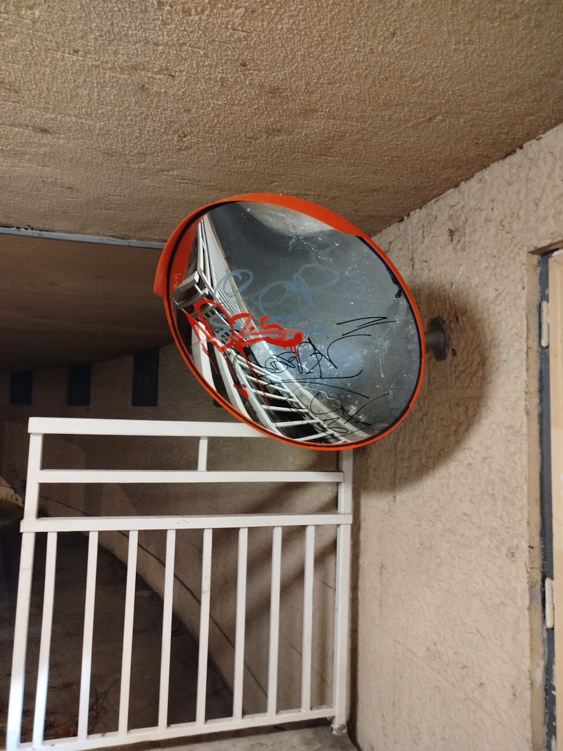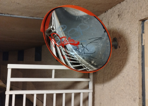 A kerékpáros lehajtó tükrét valaki betörte, jó lenne a pótlása, mert veszélyes kanyart segít ki.