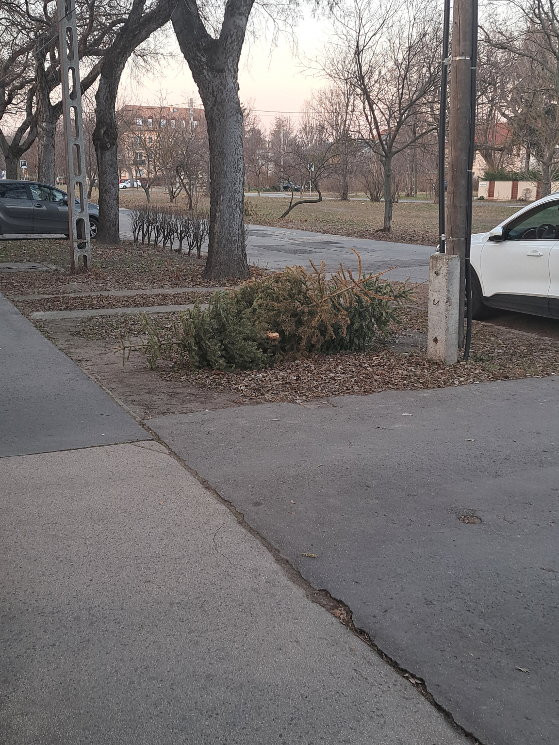 ingatlannál kidobott fenyőfákra hívja fel a figyelmet, a Zuglói
