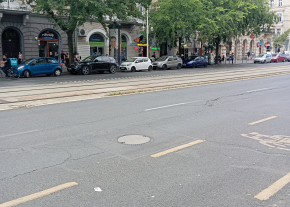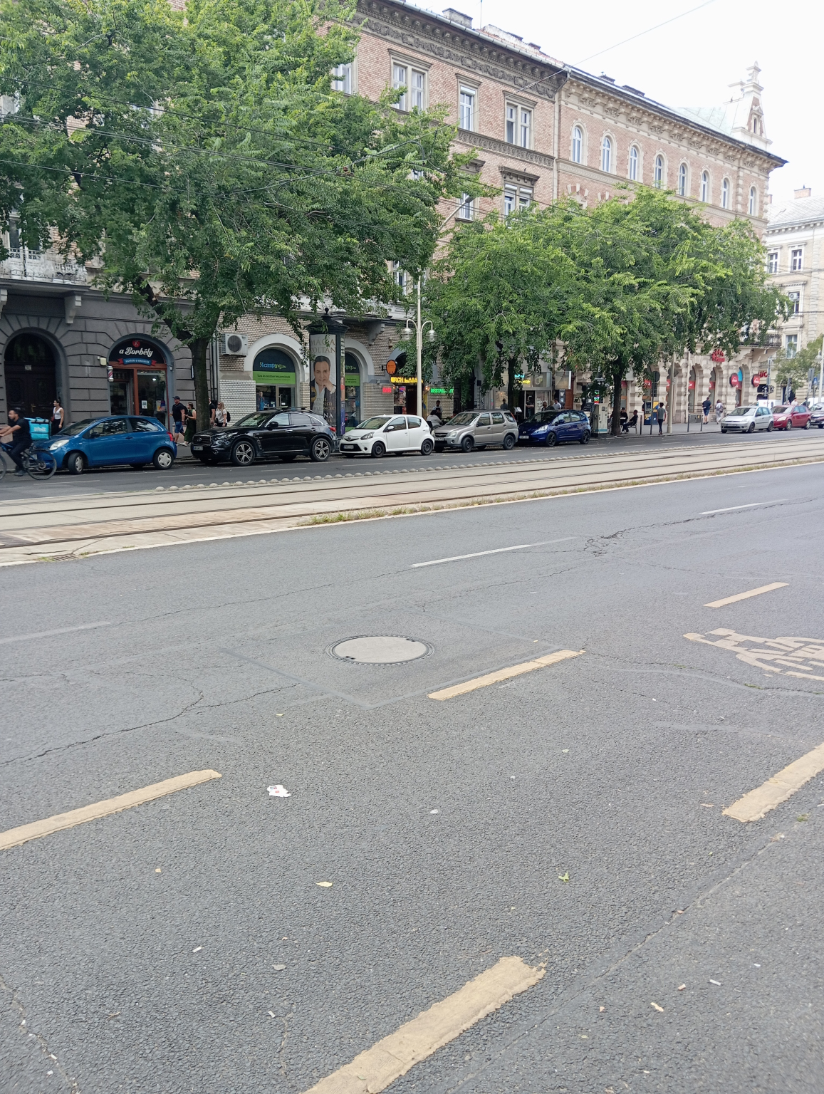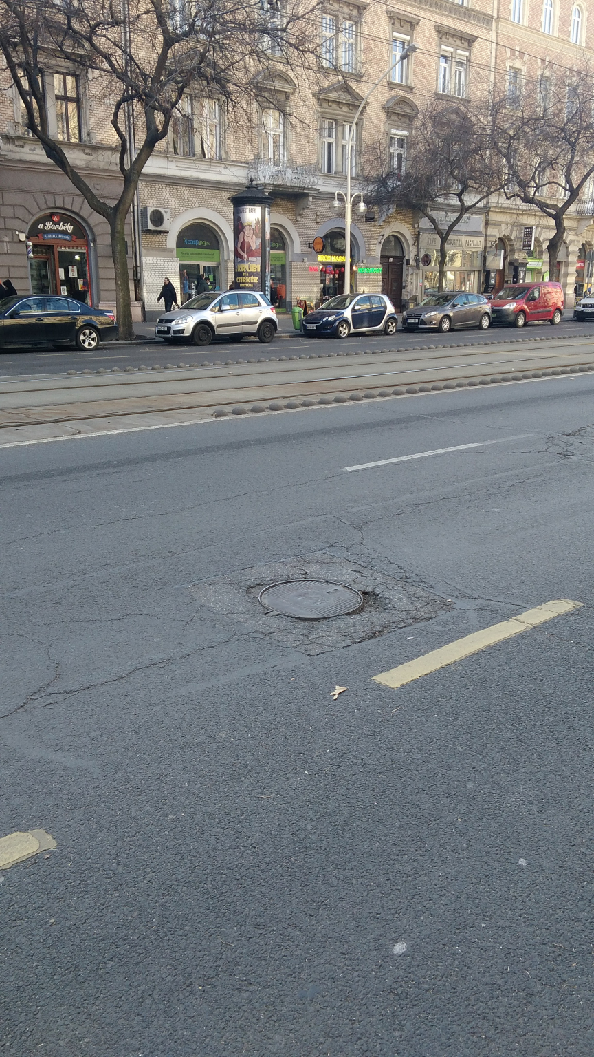 Csatornafedél körül hiányzó aszfalt - Teréz körút