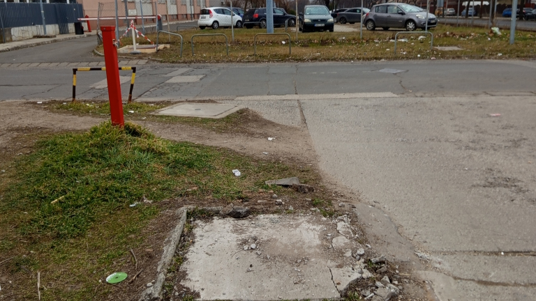 Egy balesetveszélyes beton tákolmány! Megkérném az illetékest hogy gondoskodjon a probléma megoldásáról! Előre is köszönöm!