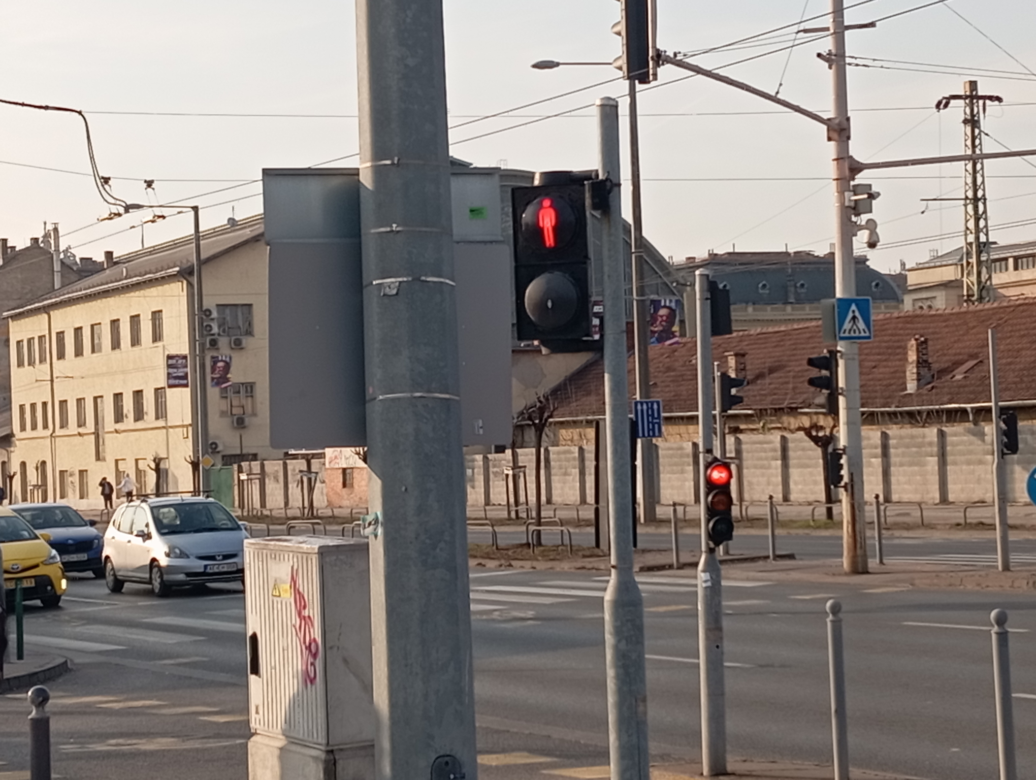 Gyalogátkelő lámpa mindkét fényterelője hiányzik.