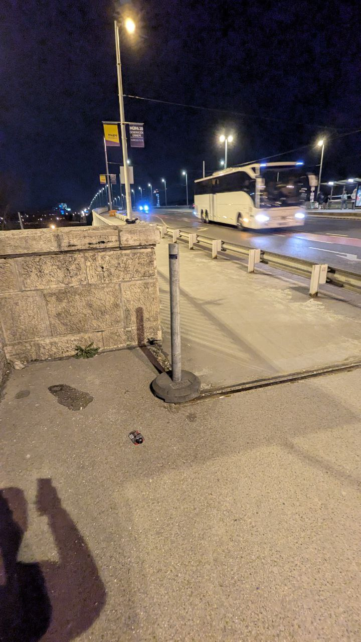 A Petőfi híd Boráros tér felőli részen lévő mobil oszlop és talp a gyalogos járda burkolat hibája miatt lett kihelyezve...