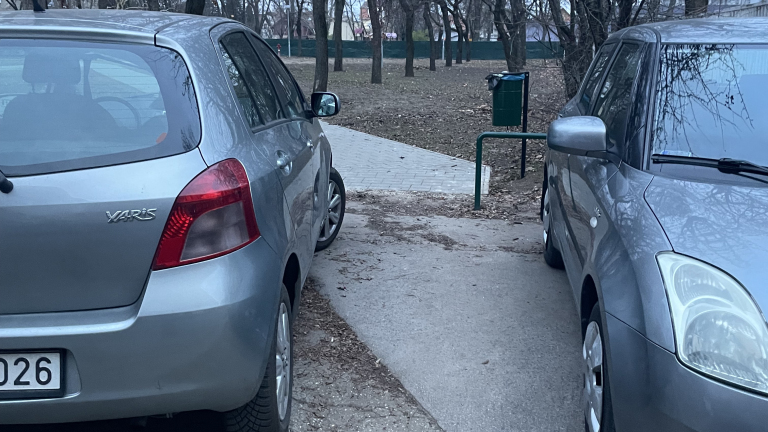 A park felújításánál készítettek egy új járdát, aminek a vége a parkoló kocsikba vezet. Itt szükséges lenne kialakítani egy kijárást, hogy babakocsival is ki lehessen jönni. A járdától 2 méterrre van egy polleres lekerítés aminek nincs értleme. Azt meg kellene szüntetni, és a járda új járda végén ugyan ezt kialakítani. Így a járda vége használható lesz, és a megszüntetéssel nem veszítenek a helyet a parkolásból sem.
