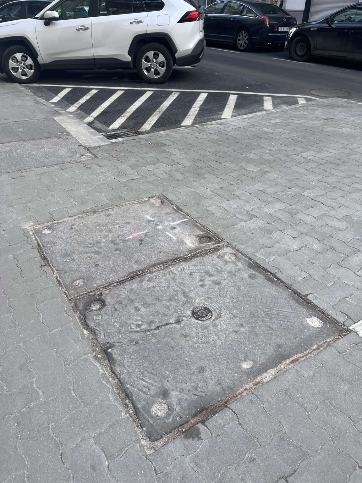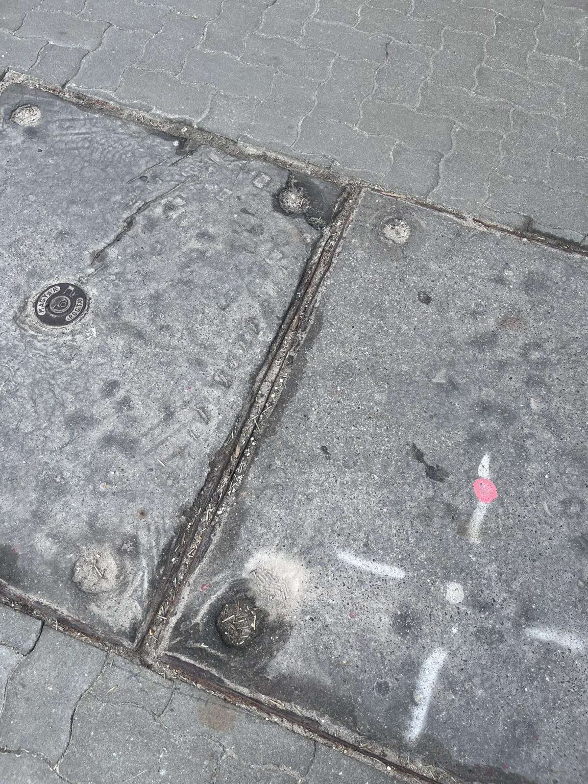 Szép új viakolor járdában minimum 35 éves hepehupás tönkrement fedlapok.