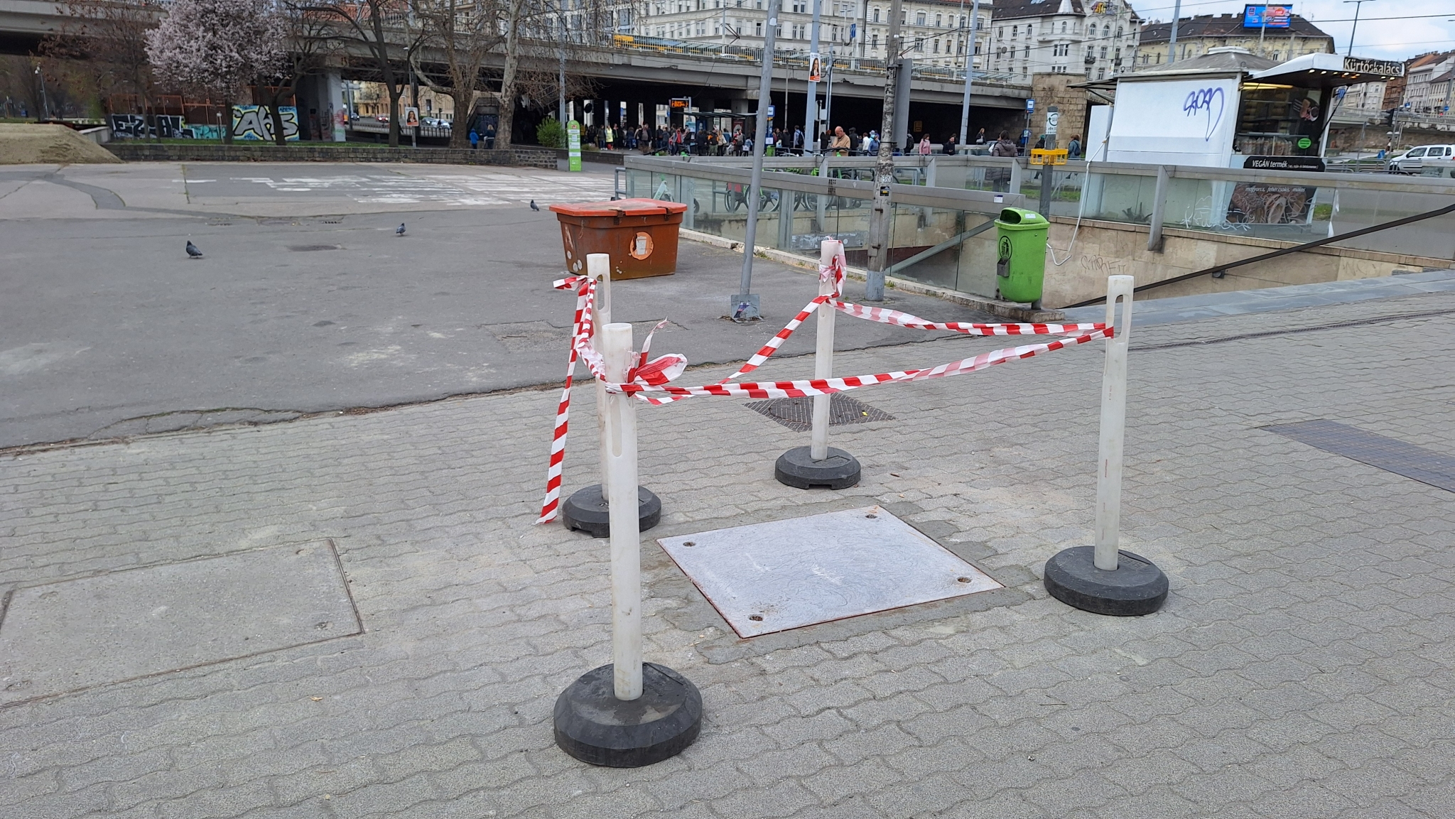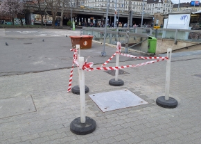 A Boráros téren a HÉV-állomás előtt hetek óta be van esve egy csatornafedél.