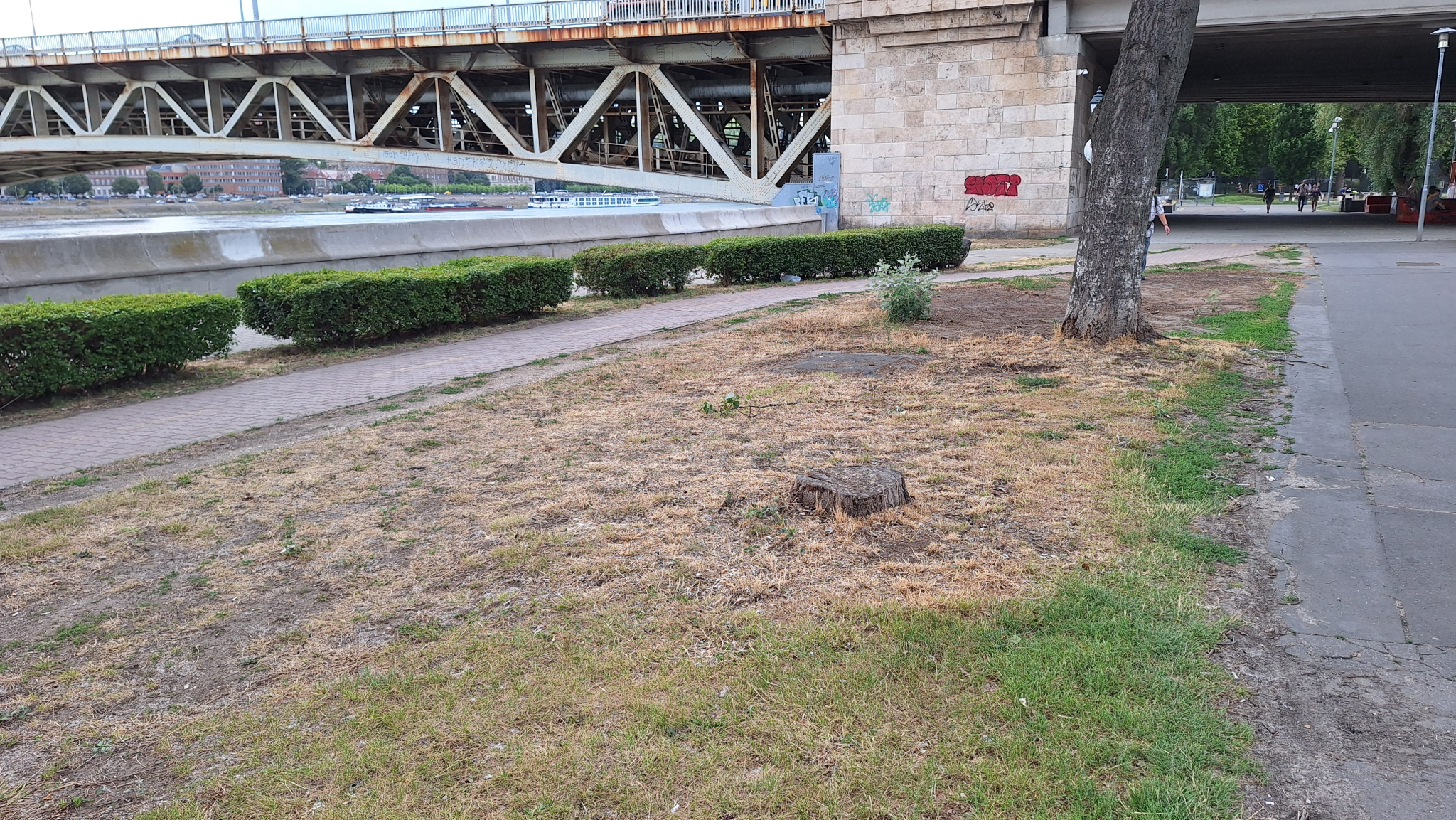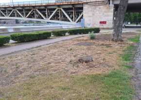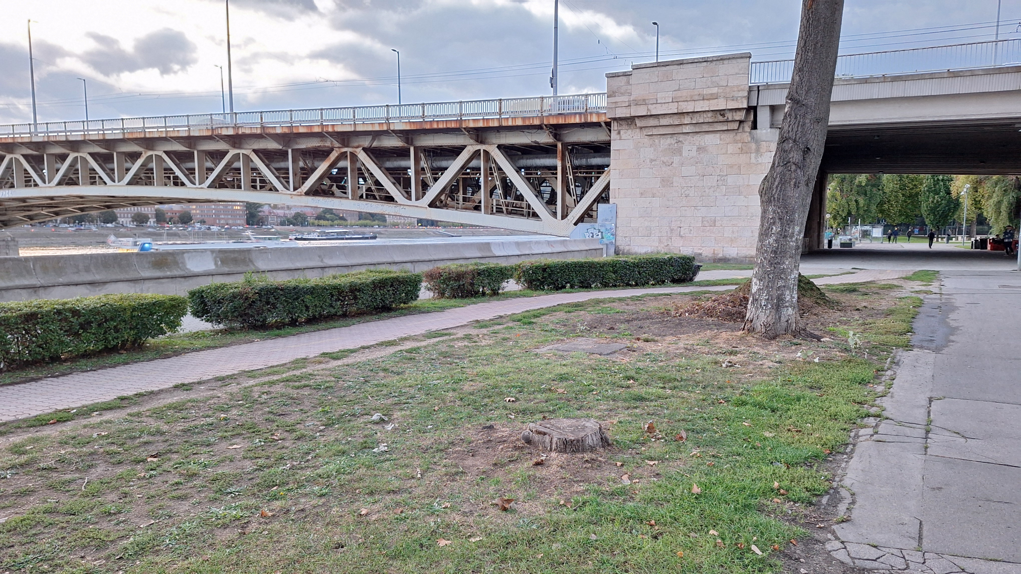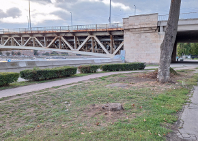 A Boráros téren a rakparton, nem messze a híd lábától van egy fatuskó.