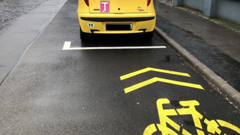 A Serény utcában a kerékpárút jelzése kijelölt parkolóba vezet, mindkettő frissen van festve, gondolom, kivitelezési hiba lehet.