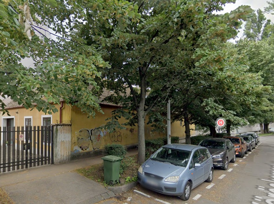 A III. kerület Vöröskereszt utcában a ház fölé lógnak a járda melletti fák ágai. Most még kopárak, de ha kizöldülnek hozzáérnek majd a cseréphez, meg ráhullik a levél.