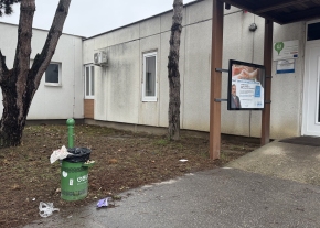 A Szél utca-Szellő utca sarkán lévő transzformátorállomásom hajléktalanok által összehordott szemét, ruhák, bútordarabok állnak halomban hónapok óta.