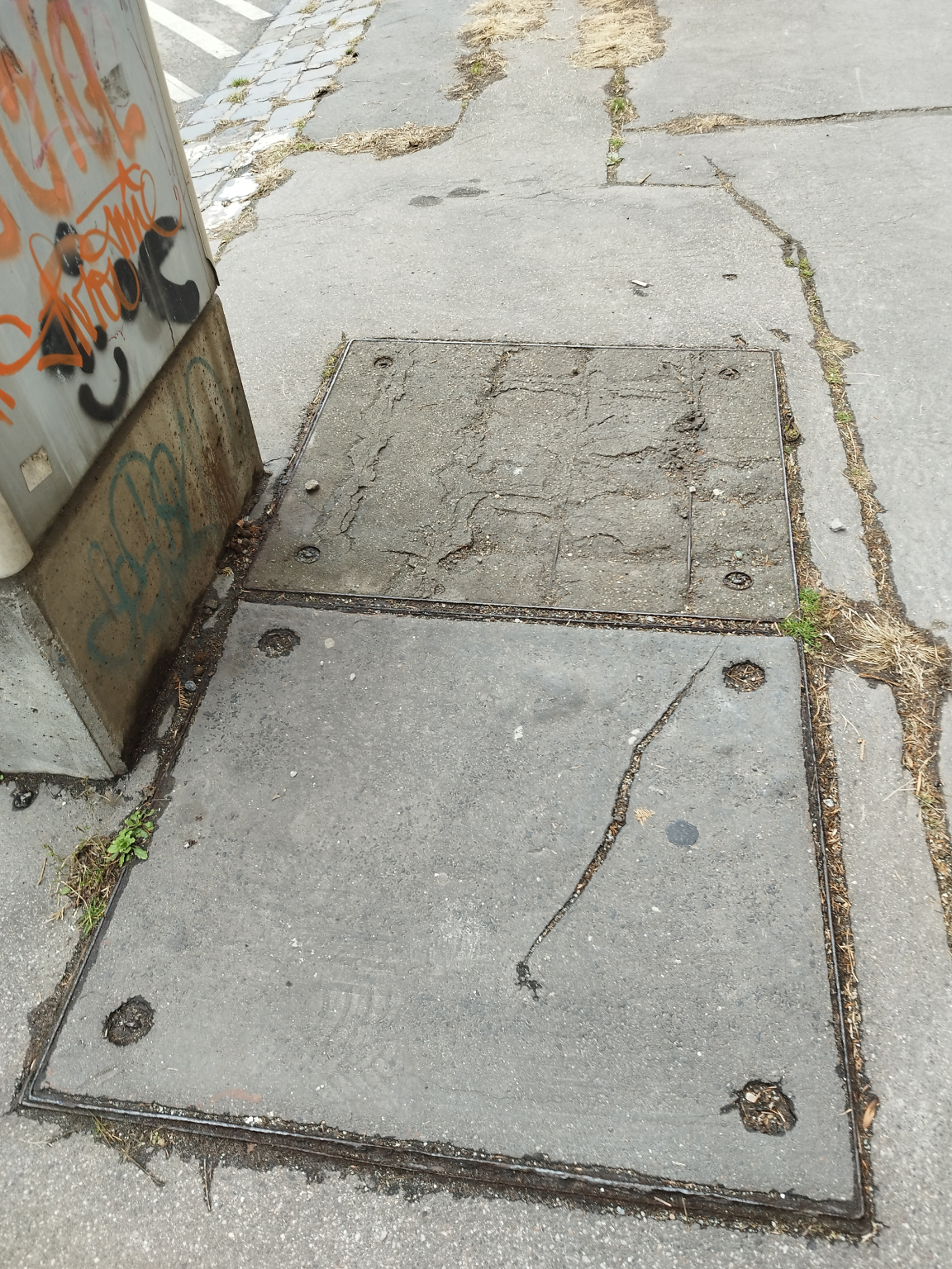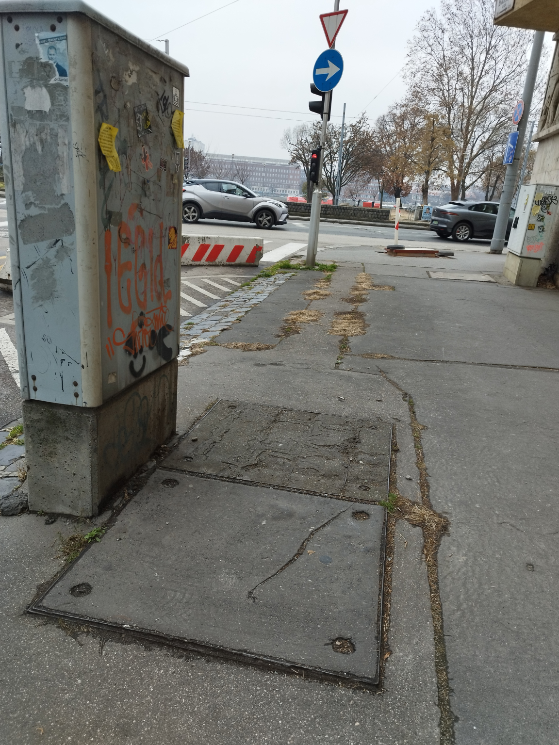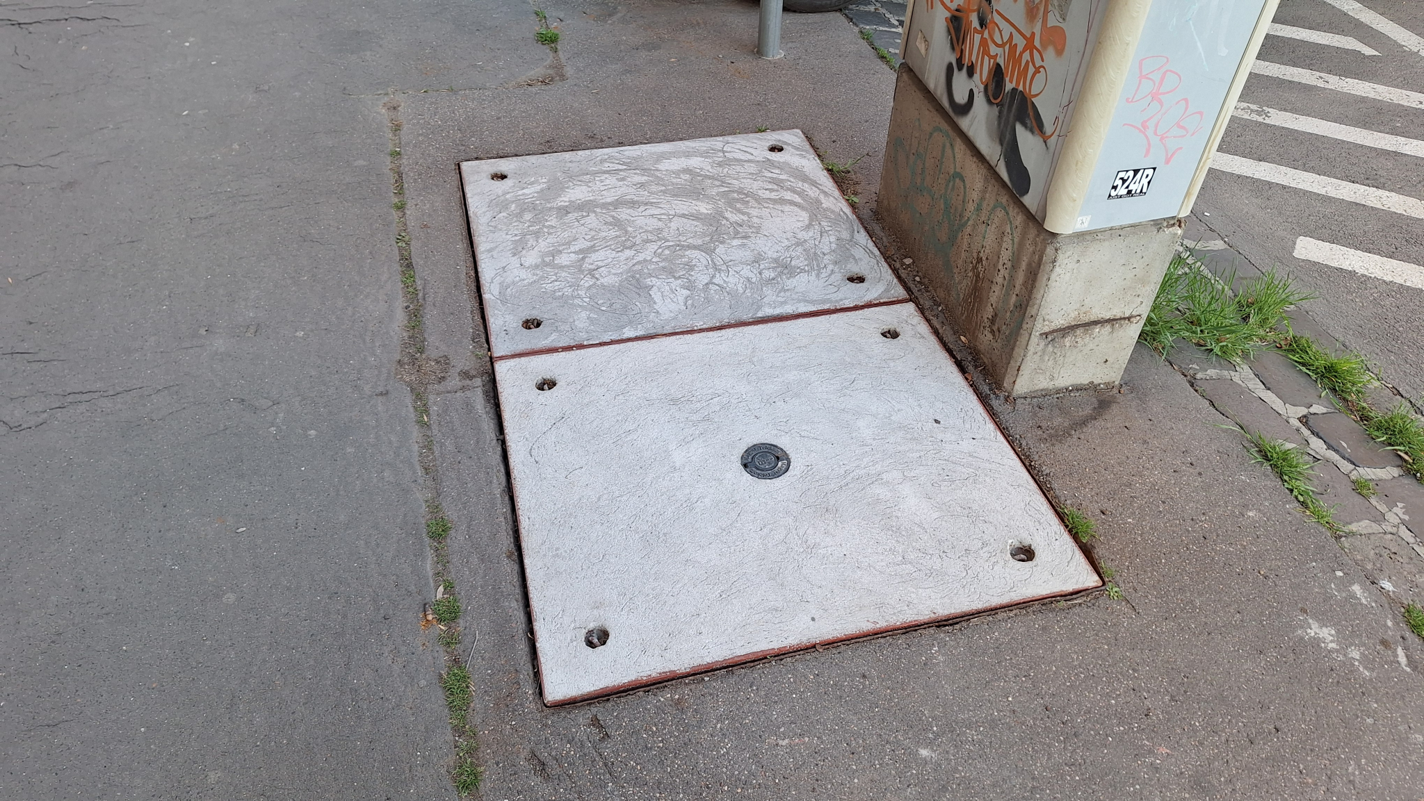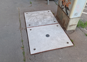 A Közraktár utca - Bakáts utca sarkán lévő fedlappár egyik tagja sérült.