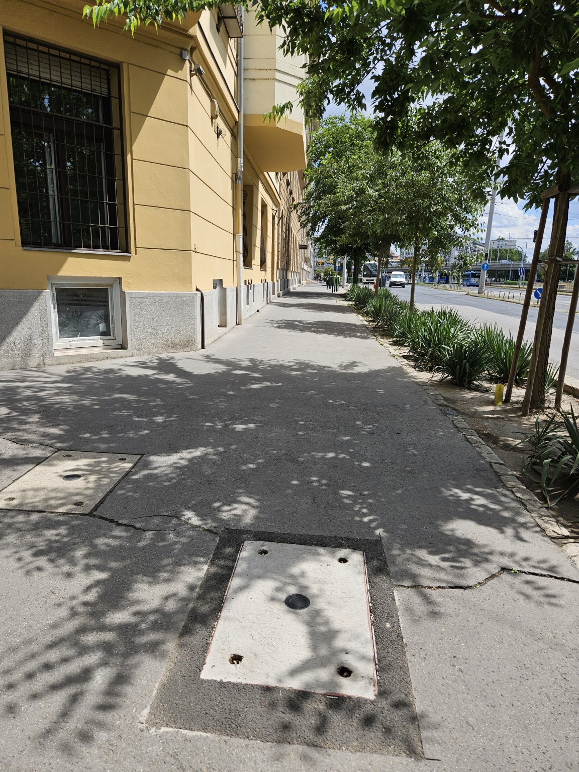 A Közraktár utcában a képen látható kisméretű fedlap süllyedt és sérült.