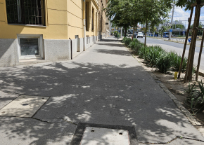 A IX. kerület, Közraktár utca 26. előtti járdán a sérült, kopott fedlap javítását a Társaságunk megrendelte.