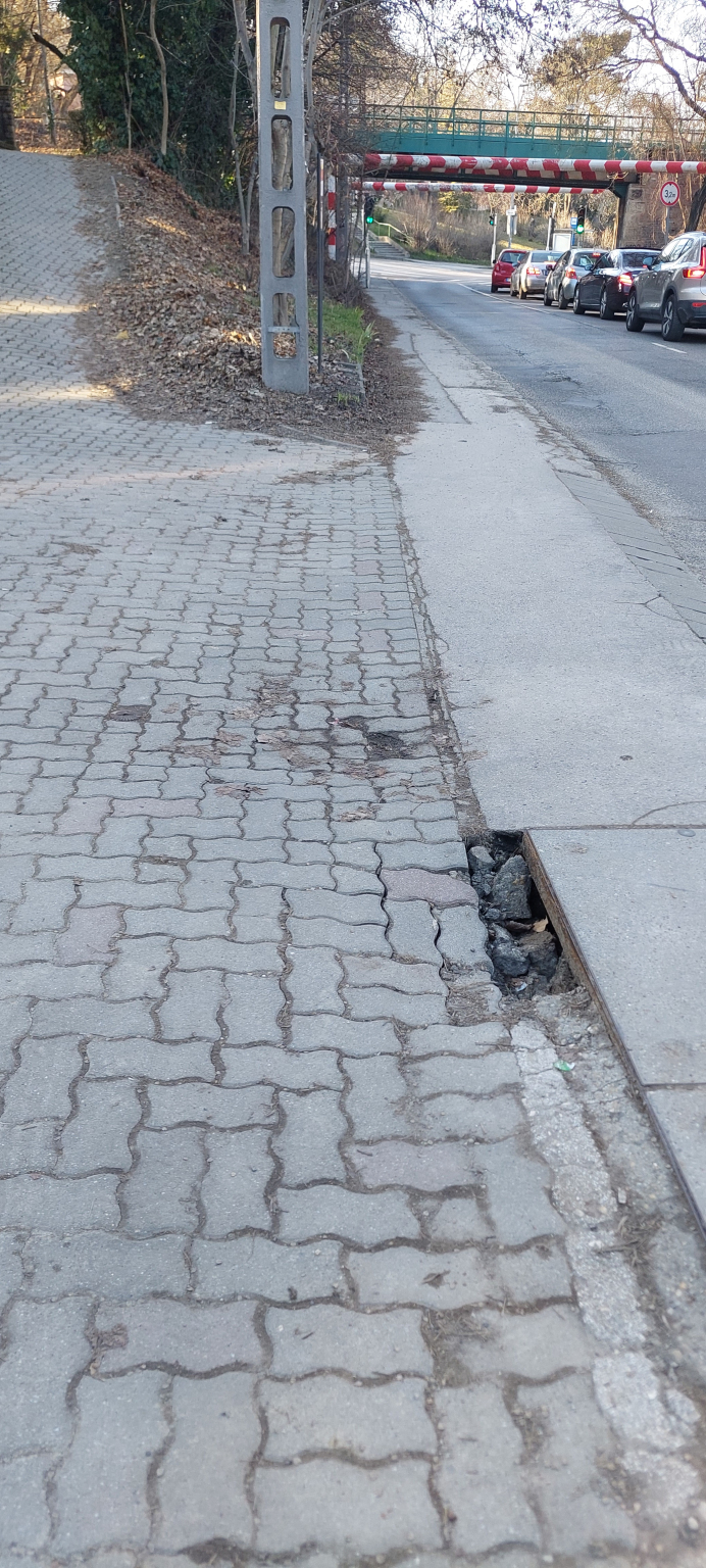 A 12.ker városmajor utca 88 előtt beszakadt a járda a Telekom aknájánál. Balesetveszélyes!