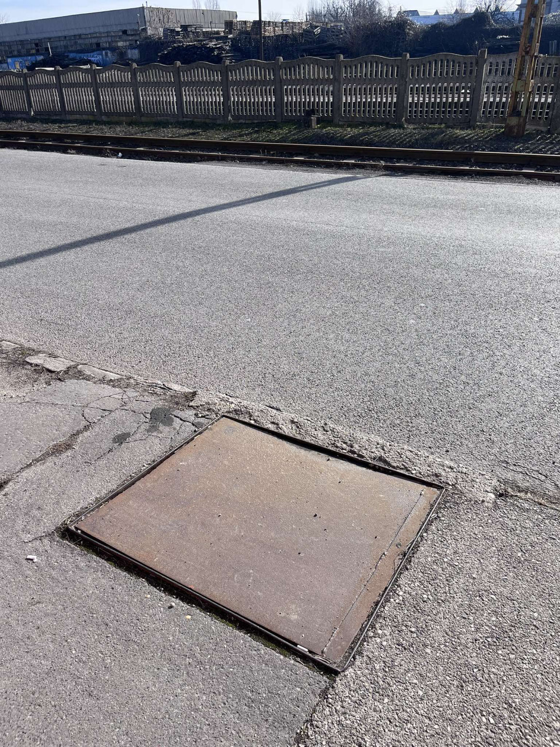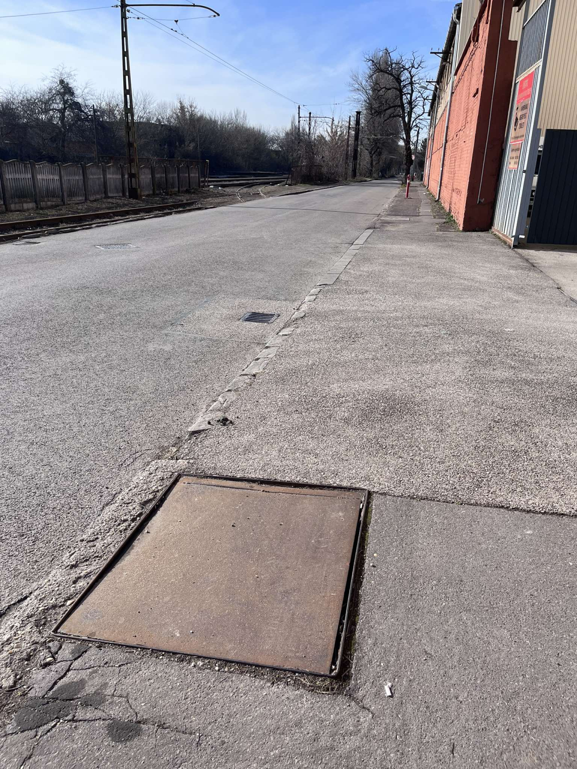 Vaslemezzel letakart közműszekrény a lemez vékony egy gyalogos alatt is meghajlik
