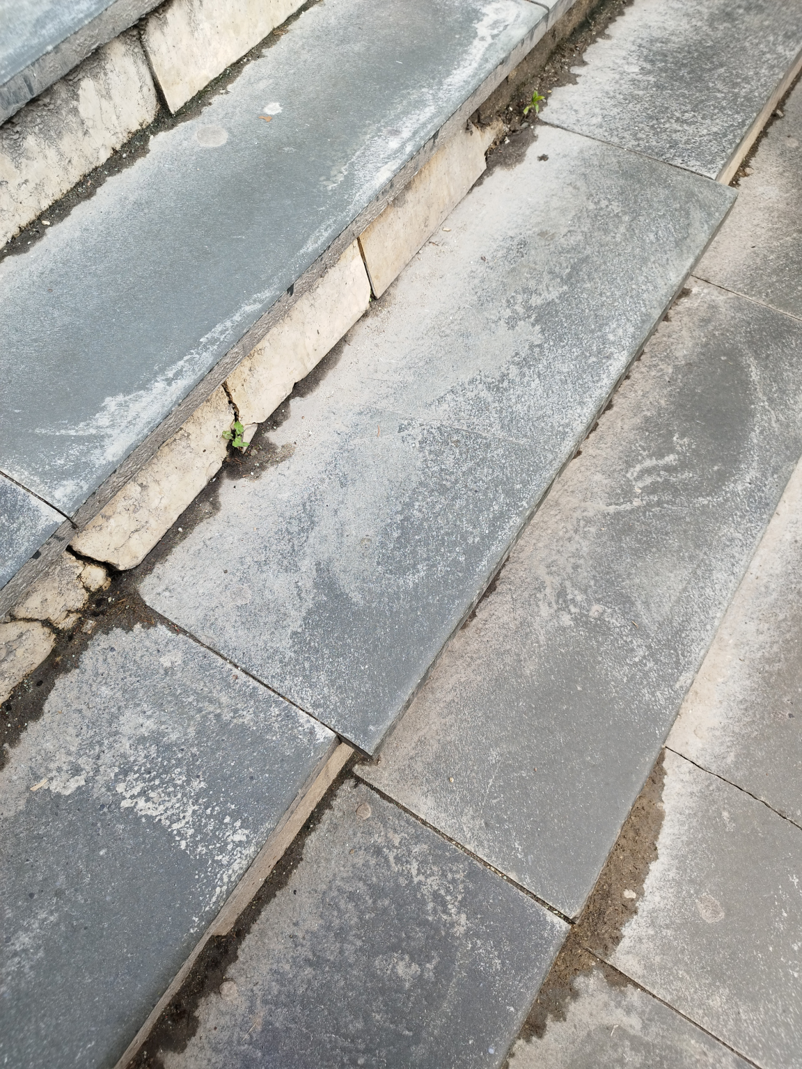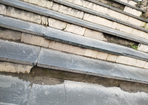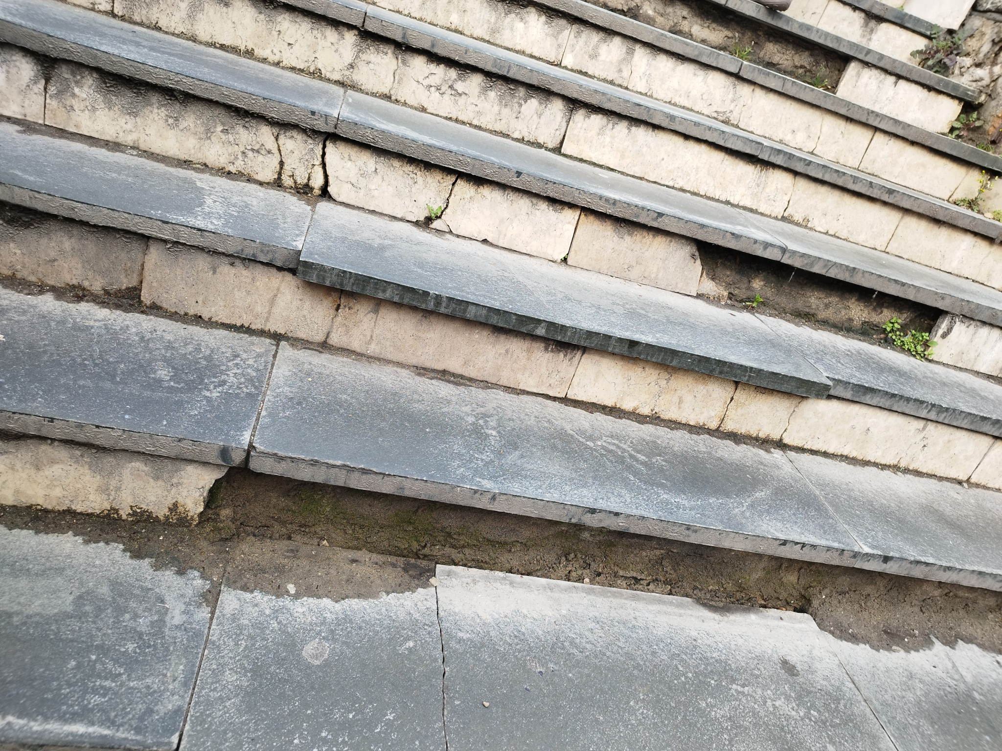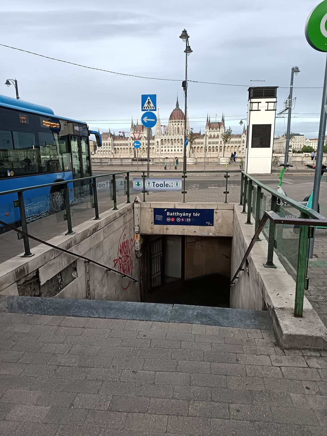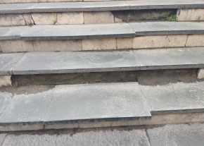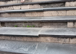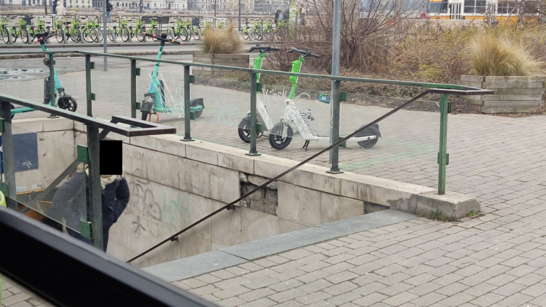 A Batthyány téren a 11-es busz megállója mellett a HÉV felé vezető lépcső szétcsúszott, balesetveszélyes.