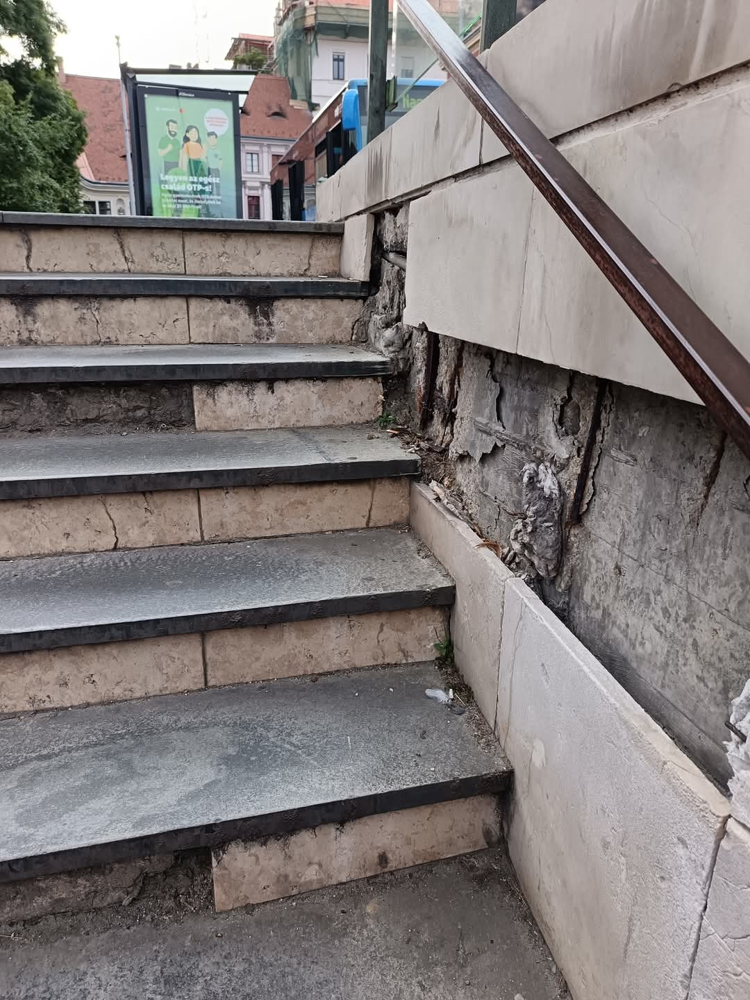 Széteső aluljáró lépcső