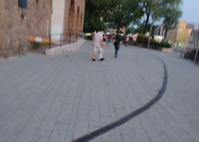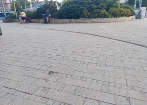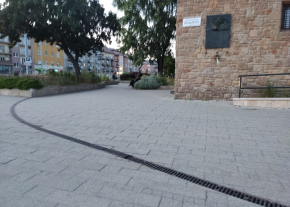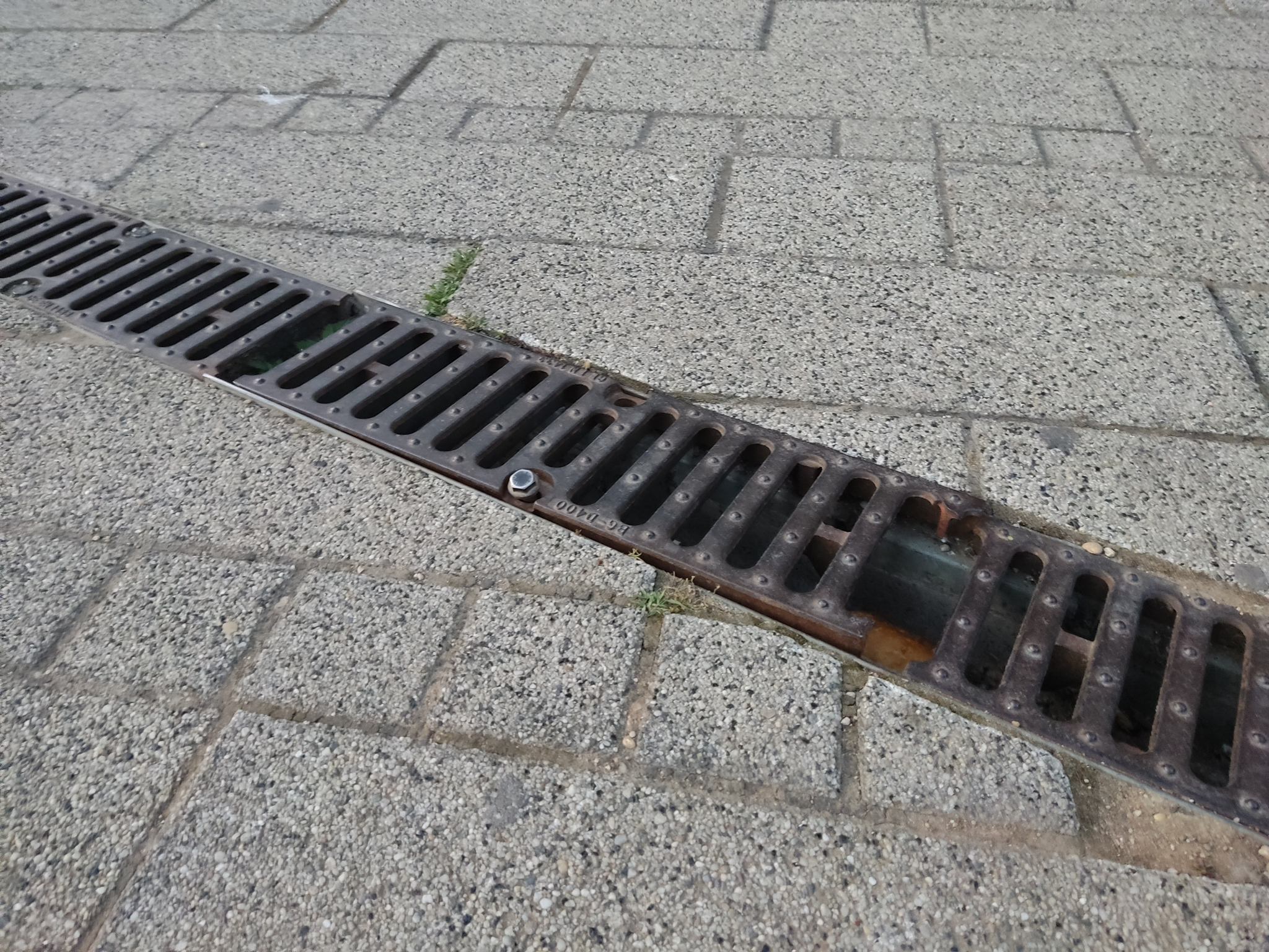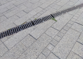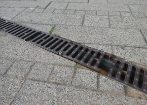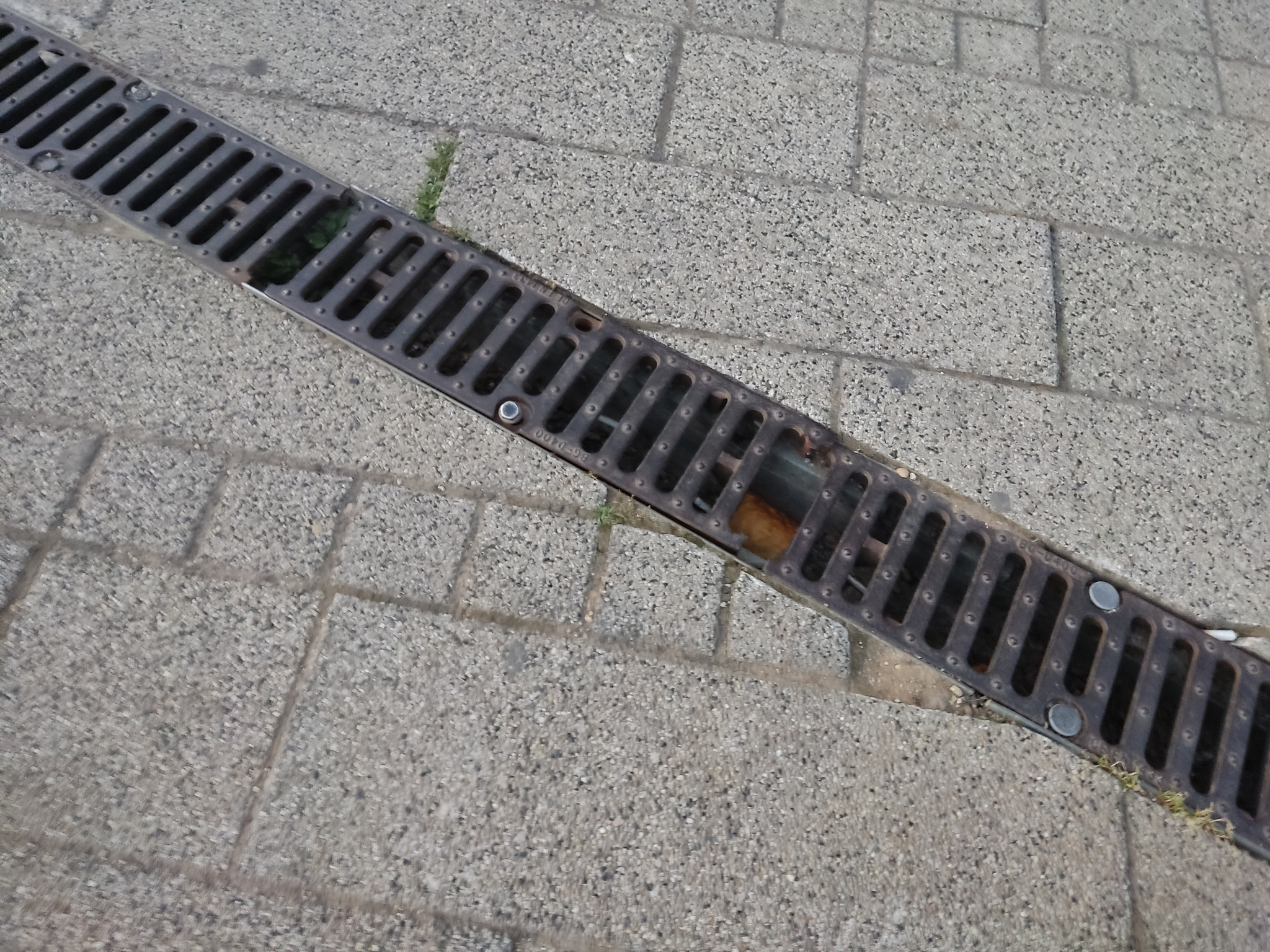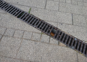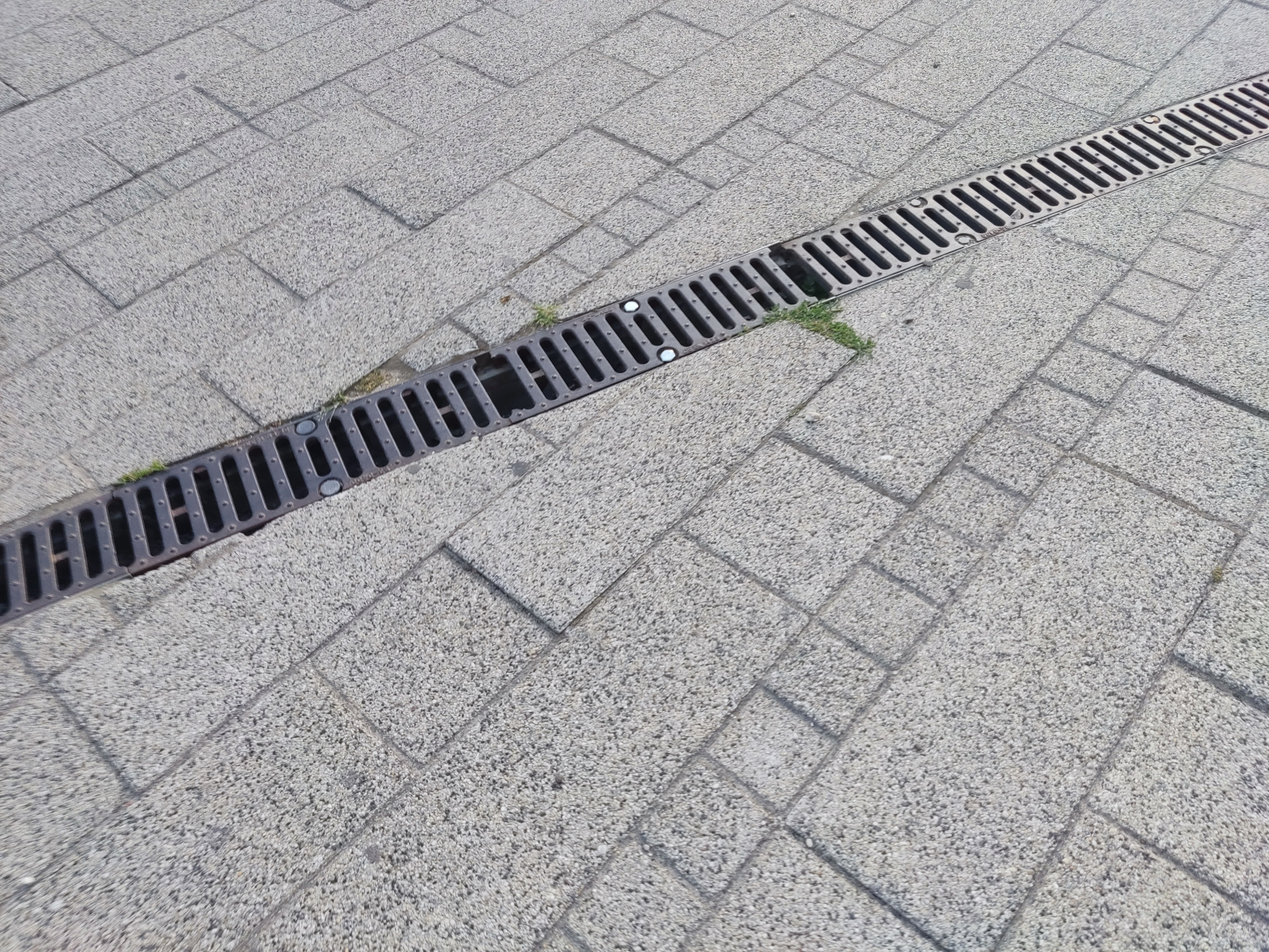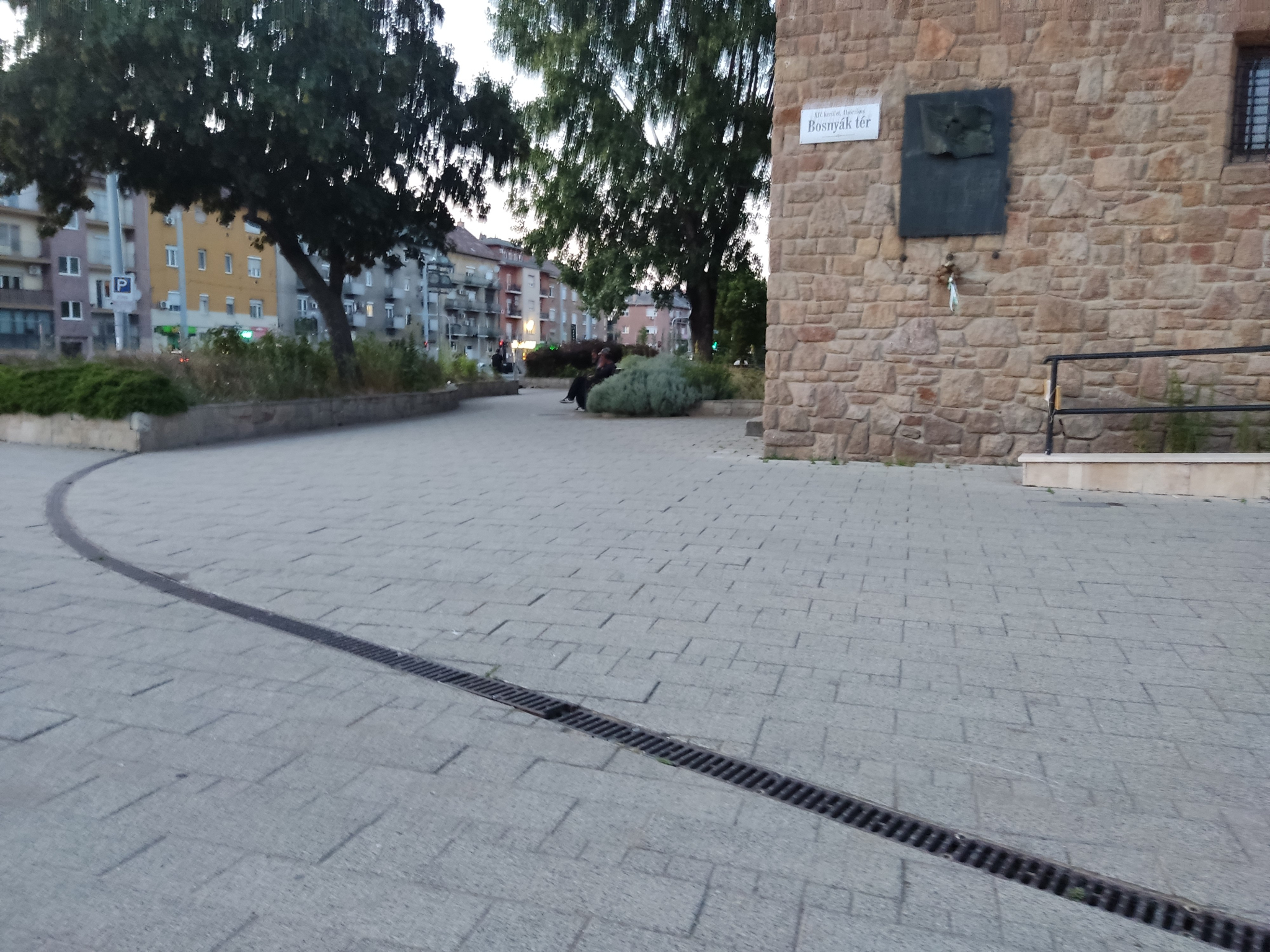 A templom előtti részen botlásveszélyes a vízelvezető, a rács nem simul bele a járda síkjába, csavarok kiállnak. Kérjük javítását!