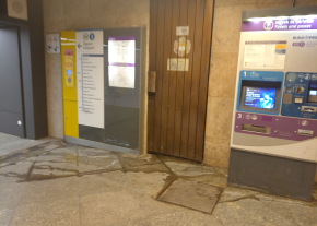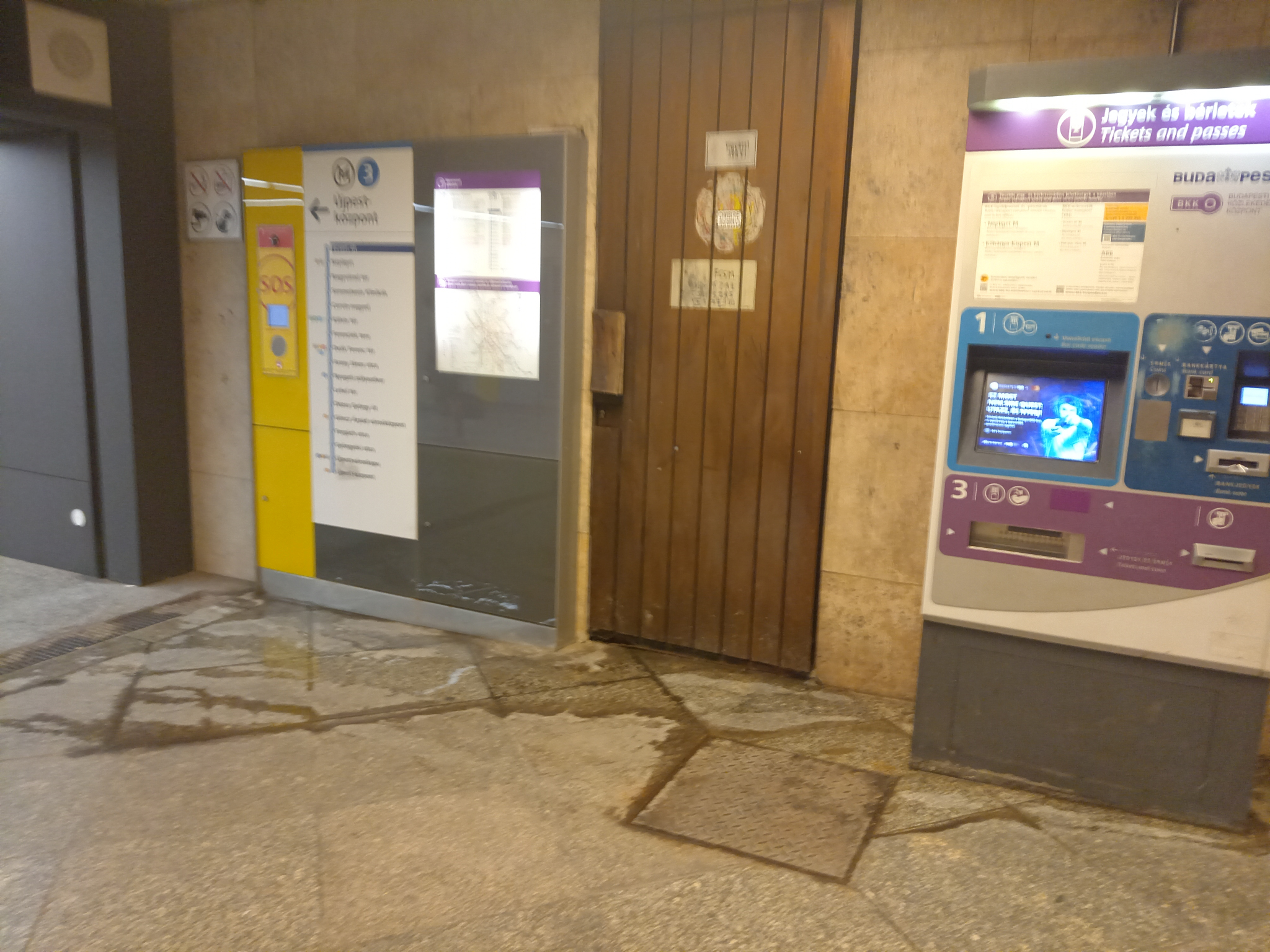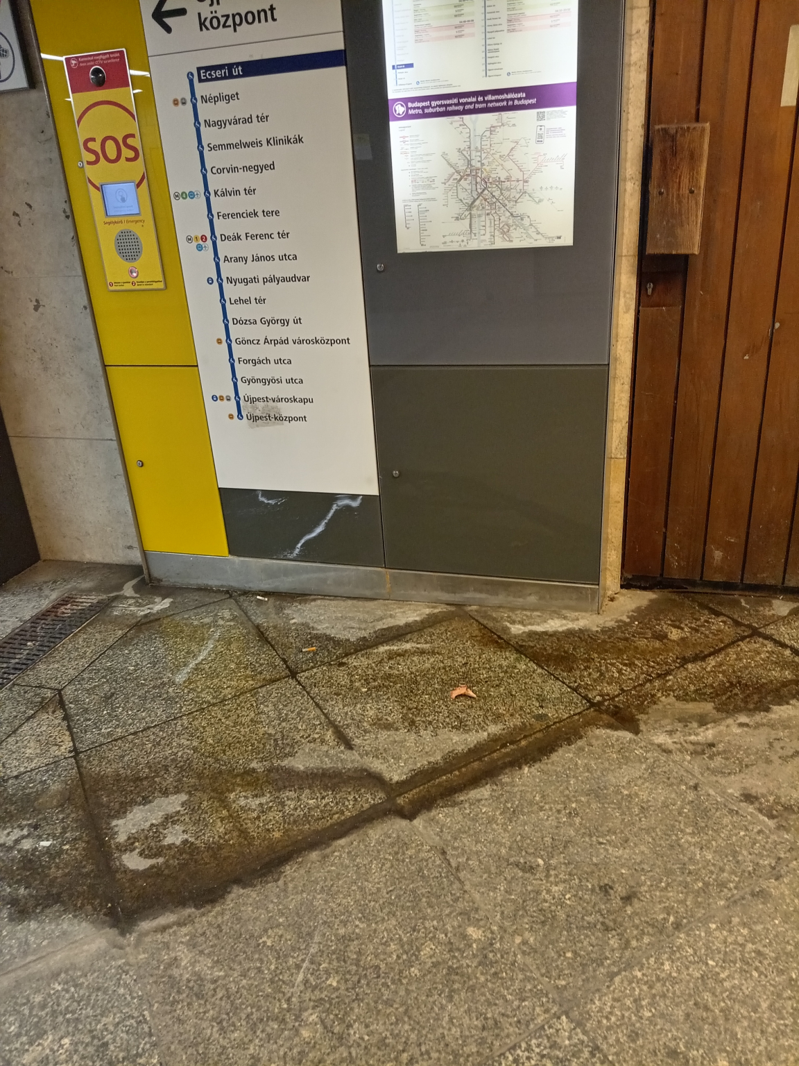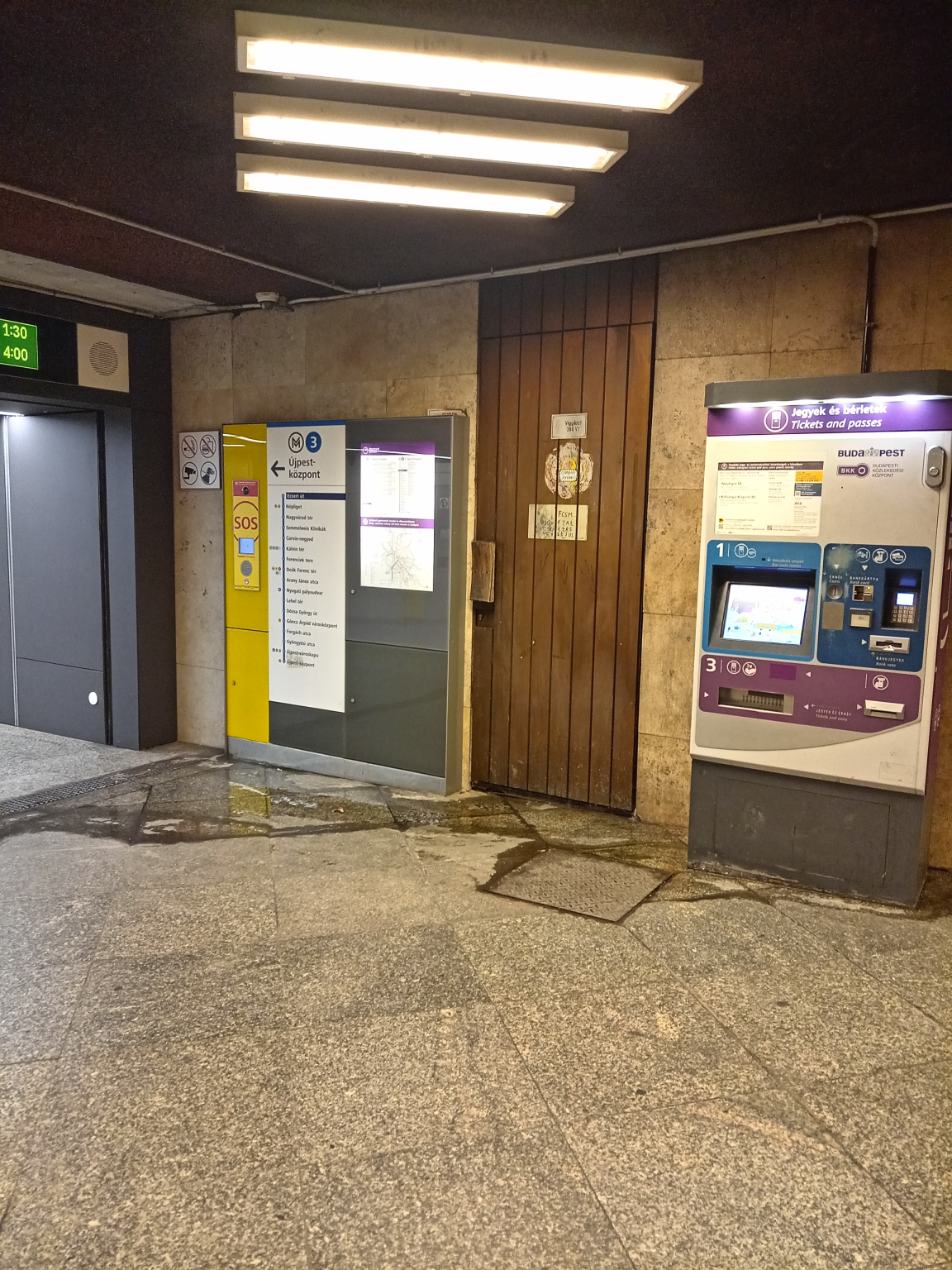 Ecseri út metróállomáson az aluljáróban az Újpest-Központ felé induló oldalon a jegyautomatánál, egyben a bejáratnál régóta felügyeletet viztócsa található, fel is marta a kövezetet. A jegy és bérletkiadó automata is nehezen megközelithető, időnként a tócsában állva lehet csak vásárolni.