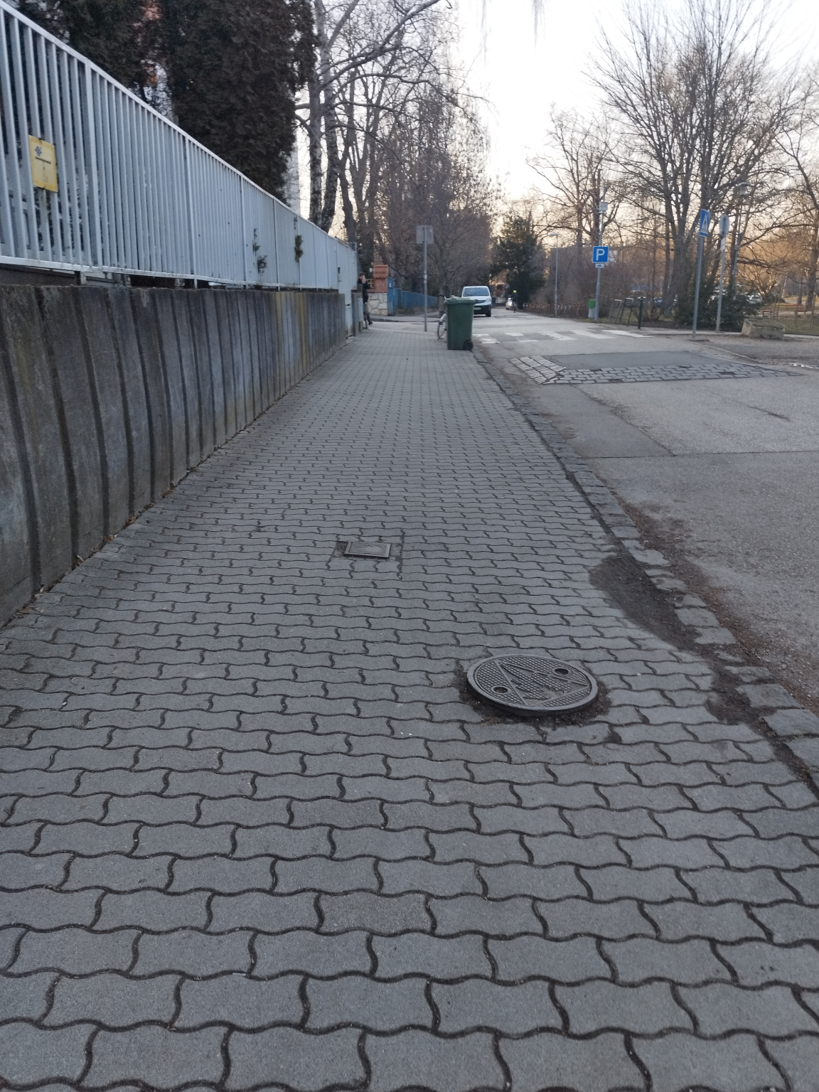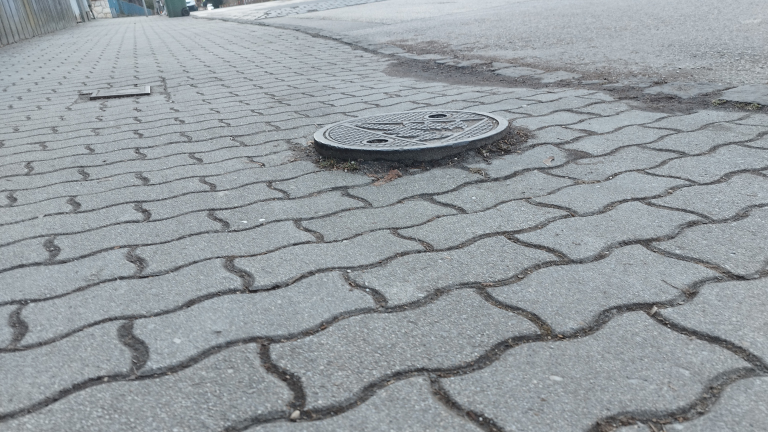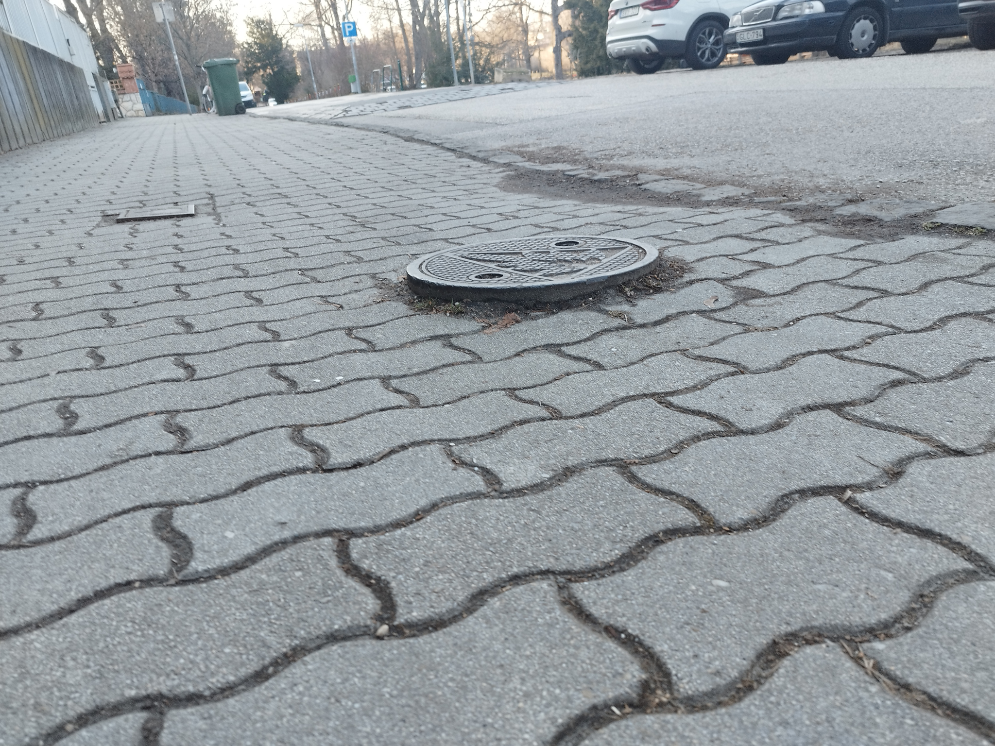 A Maros utca 54/b Művészeti Intézmény előtt lévő gázfedlap erősen kiáll a járdából.