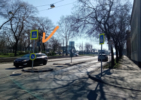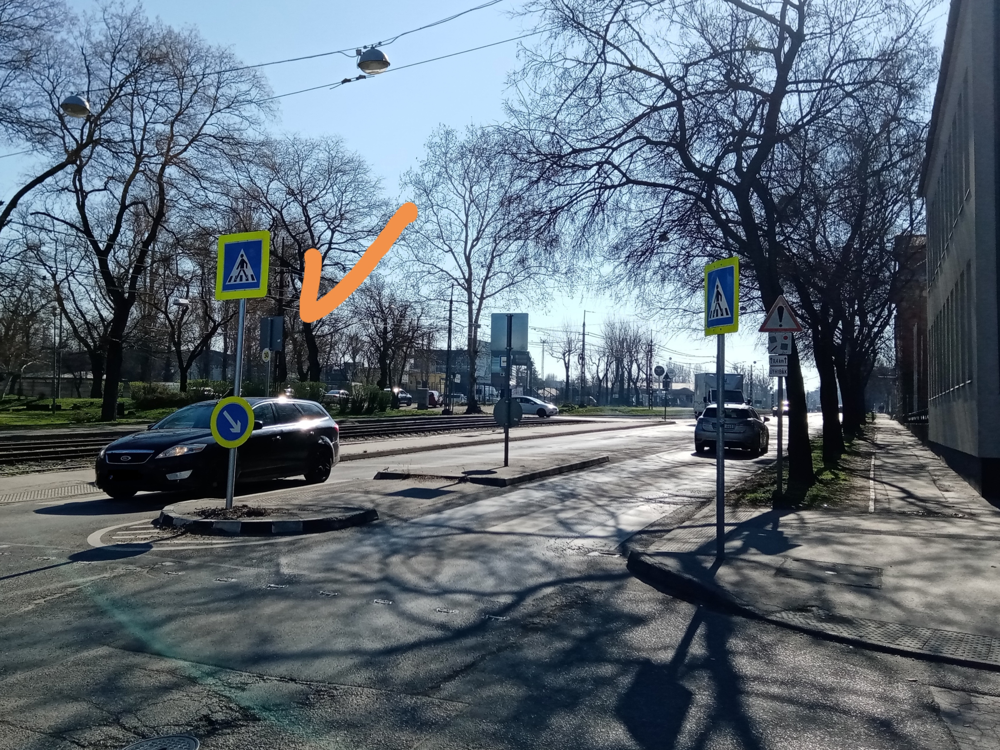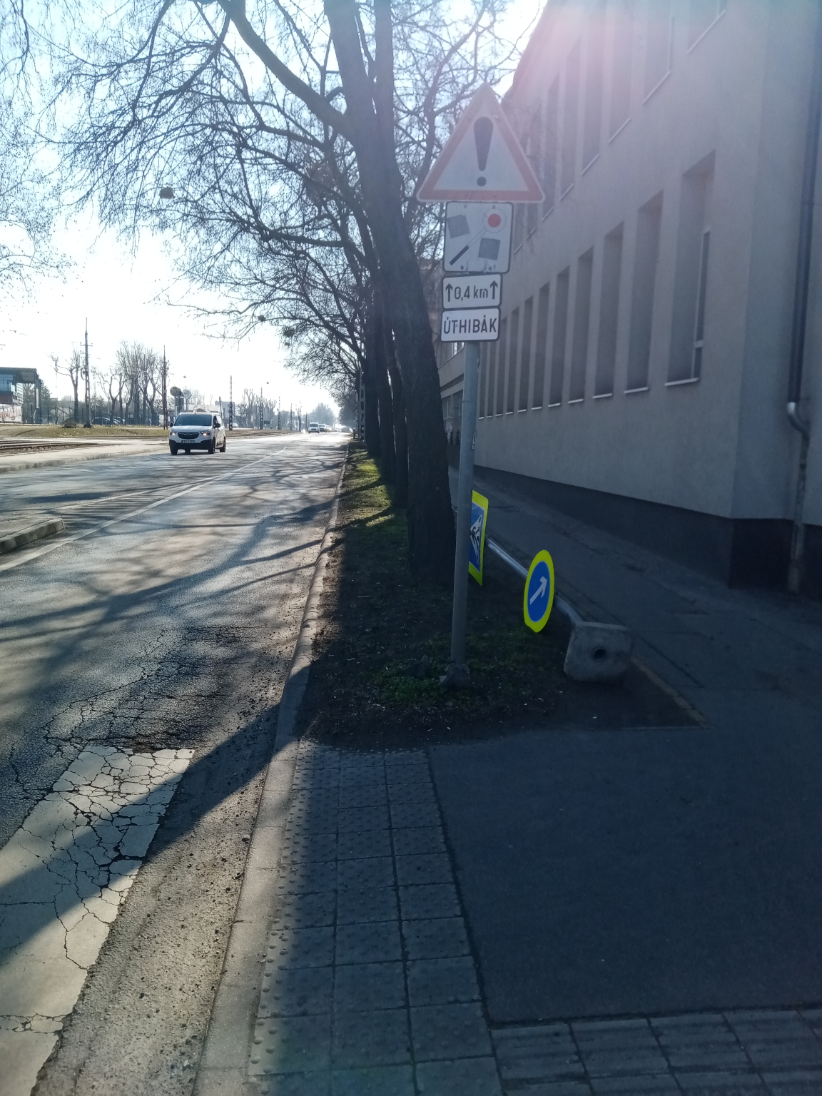 Kidöntött jelzőtábla iskola melletti forgalmas zebránál.