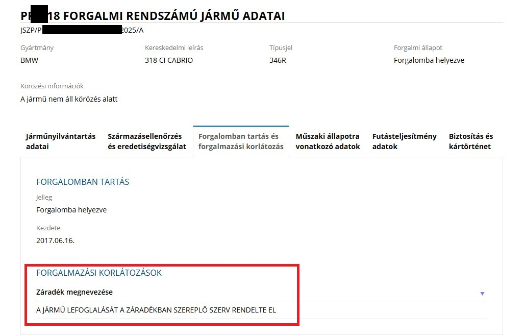 Az autón nincs érvényes műszaki és hatósági lefoglalás alatt áll. Gyaníthatóan fel is van törve. Kérjük, hogy a parkoló felszabadítása érdekében szállítsák el a járművet és értesítsék a lefoglalást elrendelőt, hogy megvan a jármű. Köszönjük!