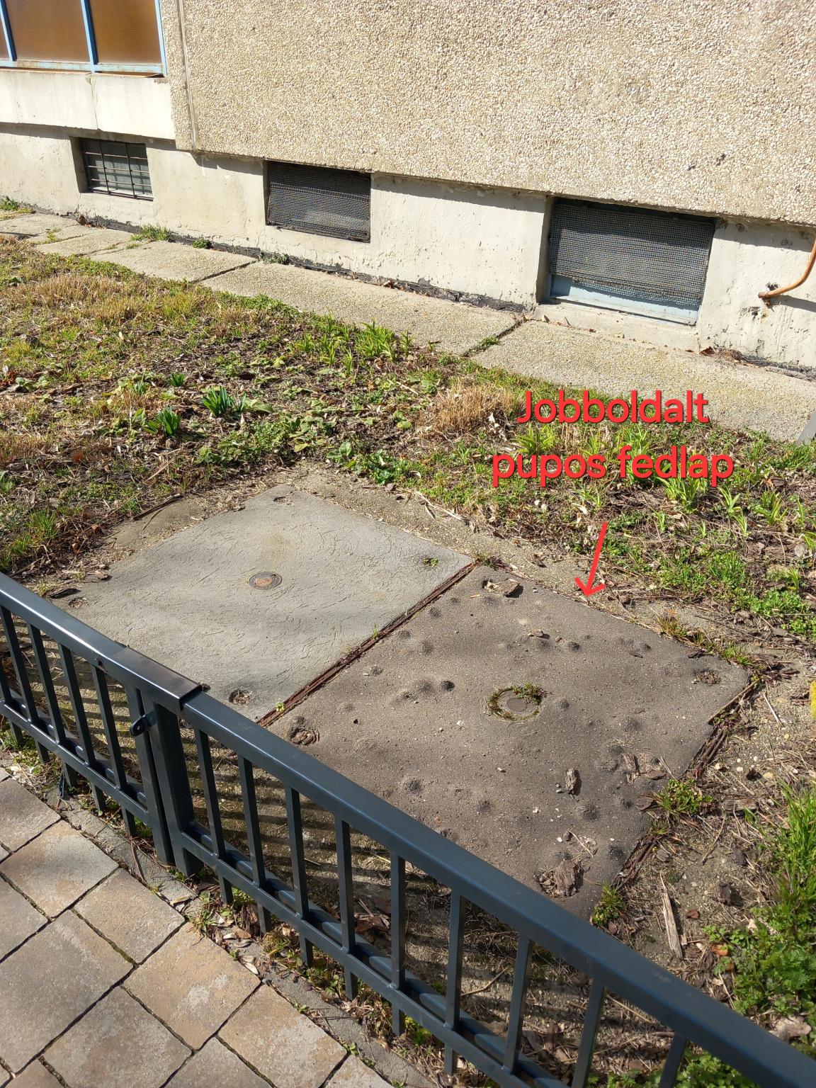A Gőzmozdony utca 18-20 között hátsón elhaladással Újhegyi sétánytól bekezdésén a jobboldali fedlap puposodás látható