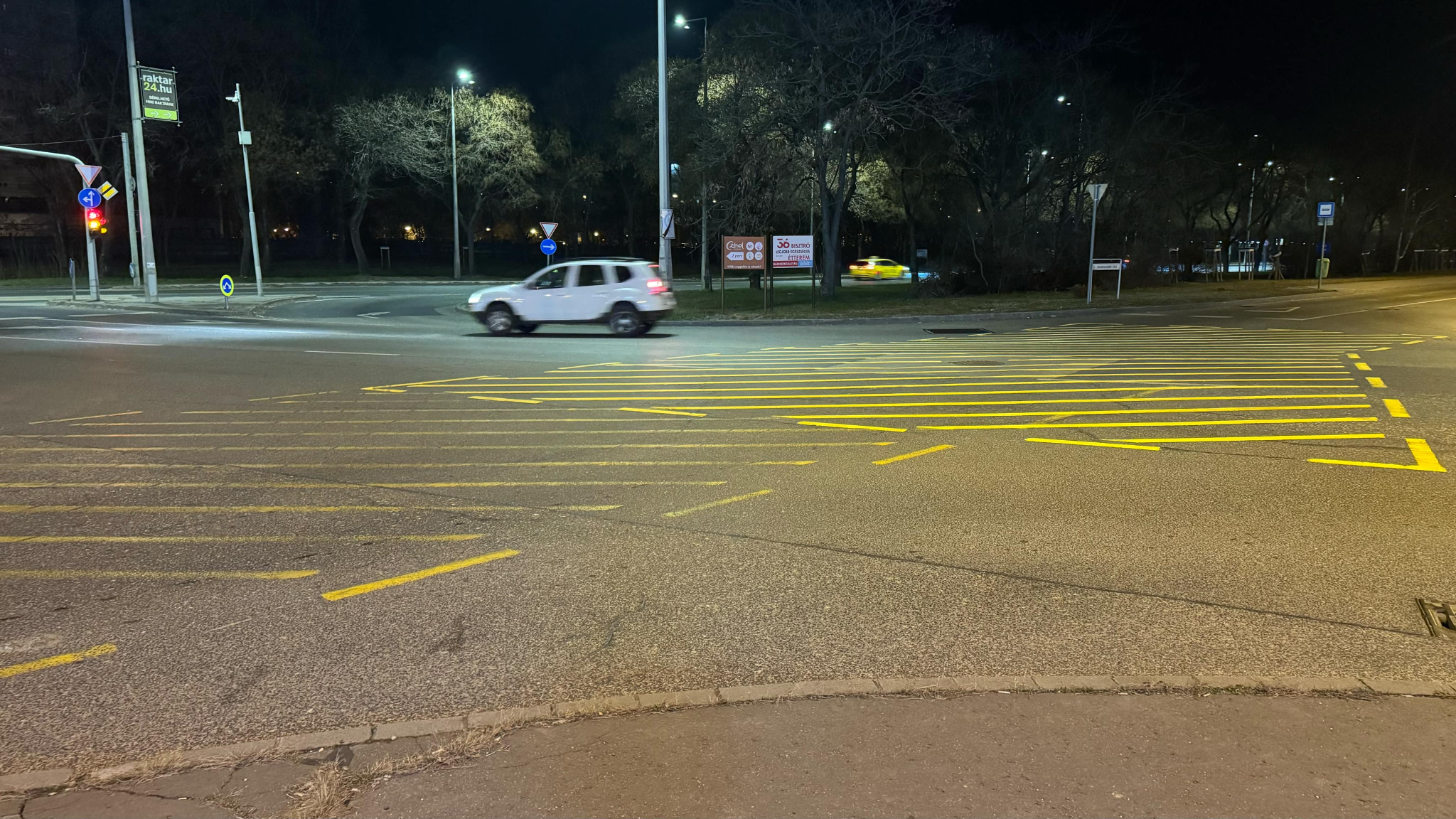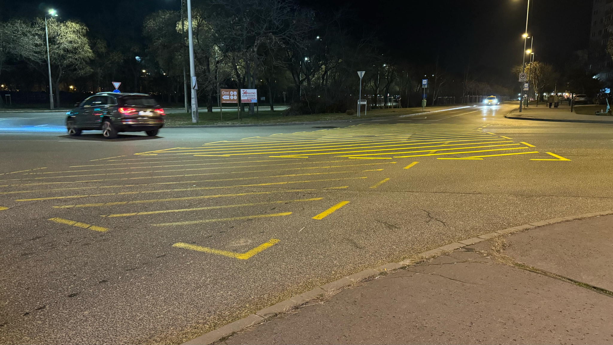 A Pünkösdfürdő út – Madzsar József utca csomópontban a „Különösen veszélyes terület” útburkolati jel alakját megváltoztattuk az autóbuszok kanyarodásának könnyítése érdekében.