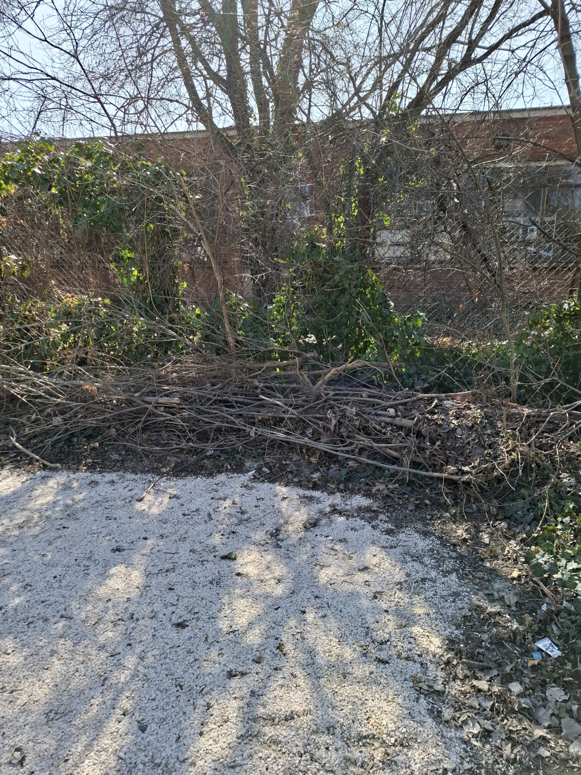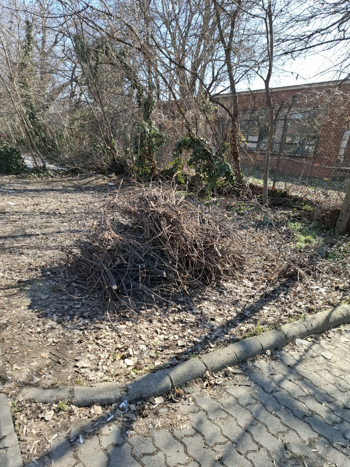 A Major utcában a parkoló környékén sok lemettszett faág hever szanaszét. Vélhetően akkor metszették meg a növényzetet, amikor a parkolót térkövezték.