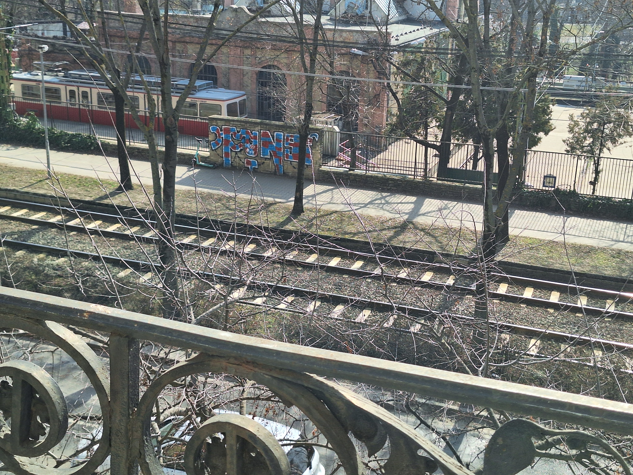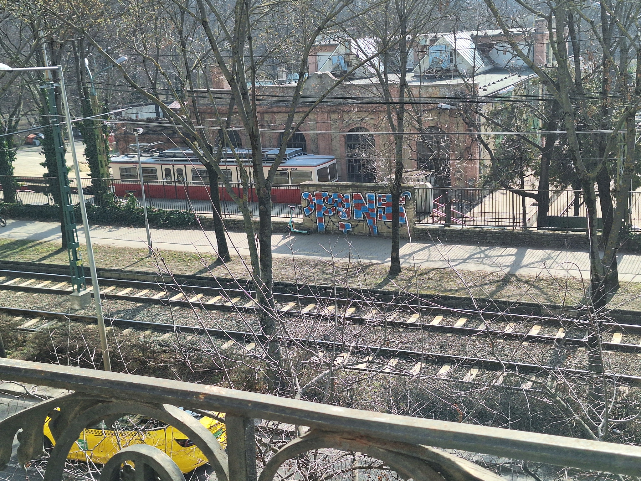 A szilágyi erzsébet fasoron y a fogaskerekű kerítése oldalán az egyik kőfalon újabb graffiti jelent meg