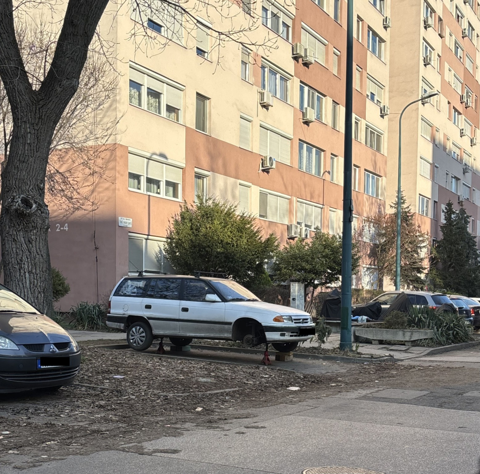 Több hete itt hagyták és csak bontják el folyamatosan. Olaj és benzin is folyik már belőle ami környezetszennyező és tűzveszélyes.