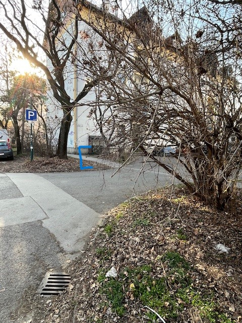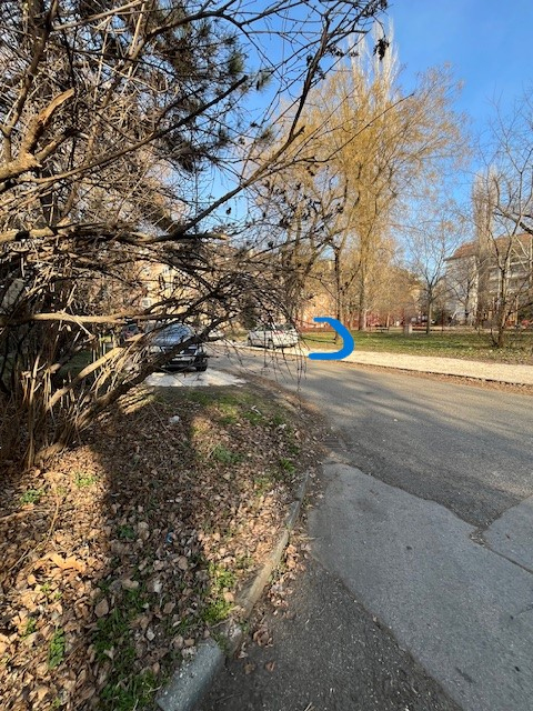 A képen látható bokrok, fák elburjánzottak, erős ágai (is) kinyúlnak az útra, amik csúnyán megkarcolták az autóm. A fotókon megjelöltem a problémaforrást. Szeretném megtudni kihez tartozik ez a terület, kinek kellene gondozni. A Társasháznak vagy az Önkormányzatnak.
